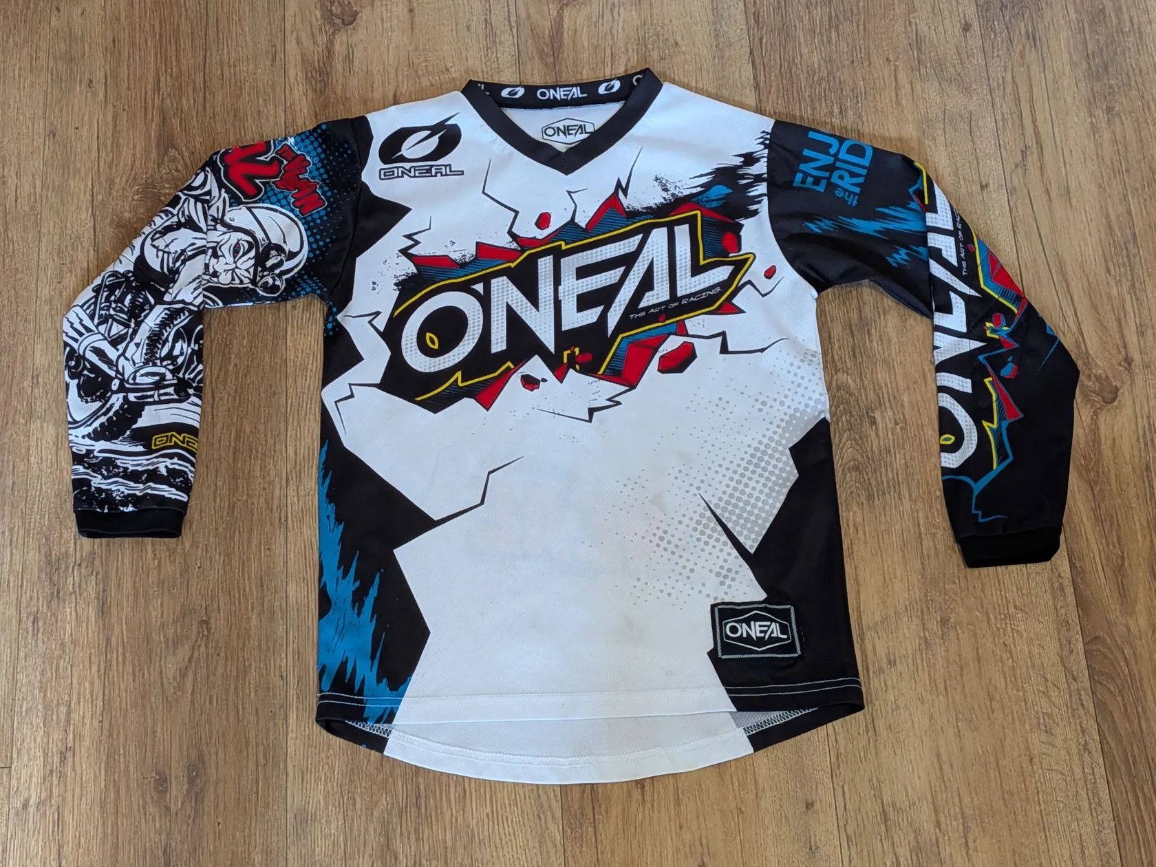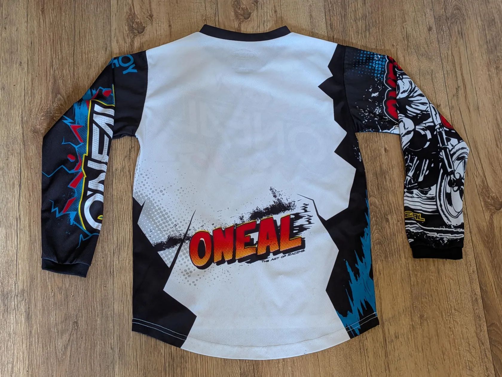 Prodám 2 dětské dresy Oneal. Každý je rok jetý, sem tam nějaká zatržená nit, ale nic hrozného. Cena 350 Kč za kus, nebo 600 za oba. Bílý velikost M (šířka v podpaží 41 cm, délka přední části 53 cm). Šedý velikost L (šířka v podpaží 46 cm, délka přední části 60 cm). Osobní předání je možné ve Zruči u Plzně, posílám Českou poštou a přes Zásilkovnu.