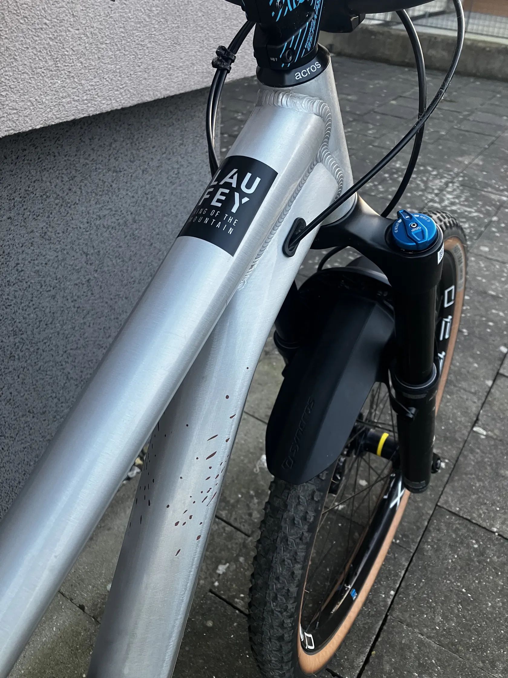 Rám Orbea Laufey + FOX 36 Performance 150 mm – celkově sportovní / vyšší třída osazení.