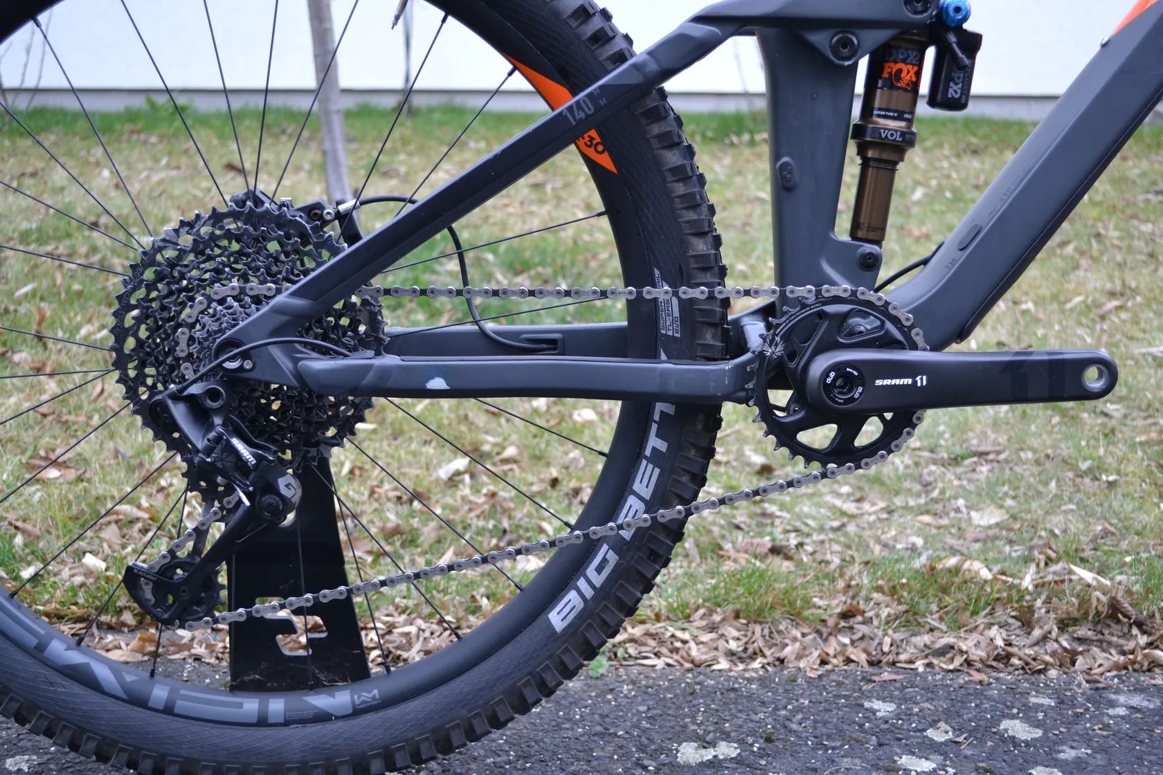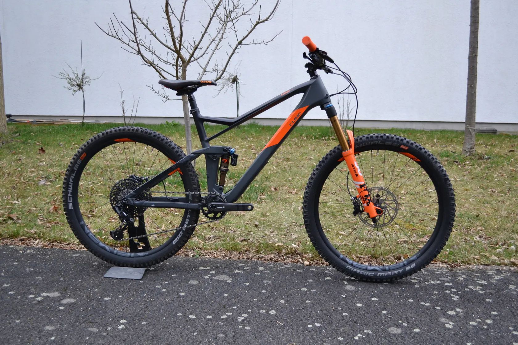- Pláště: Schwalbe Magic Mary / Hans Dampf, Addix, tubeless easy, 2.35 – zaměřeno na přilnavost v terénu