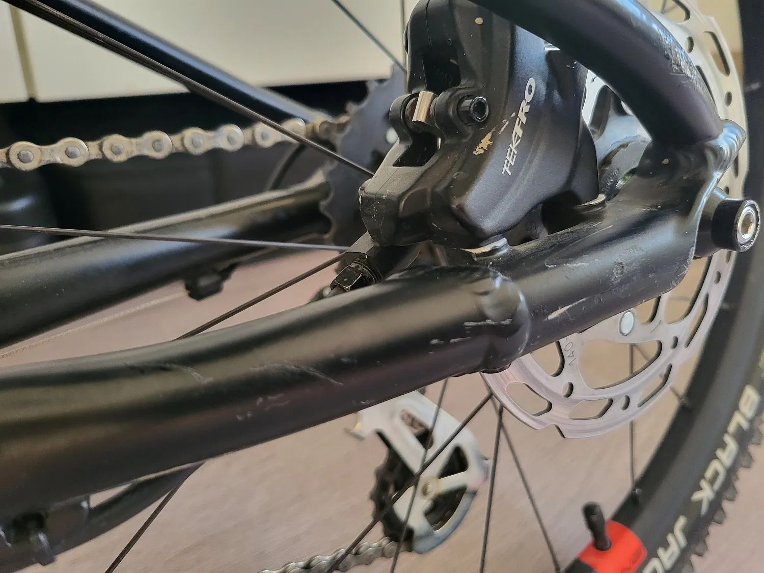 Ale tedy ve zkratce : - odváženo tak jak je k prodeji = 8,7kg - hydraulické kotoučové brzdy ! Tektro, - výška sedla v nejnižší poloze = 54cm - 7 převodů v podobě 1x7 - drobné provozní škrábance přítomny, ale kluk se k tomu choval opravdu hezky a nic brutálně podřeného na kole není. - řetěz má odjeto maximálně 50km