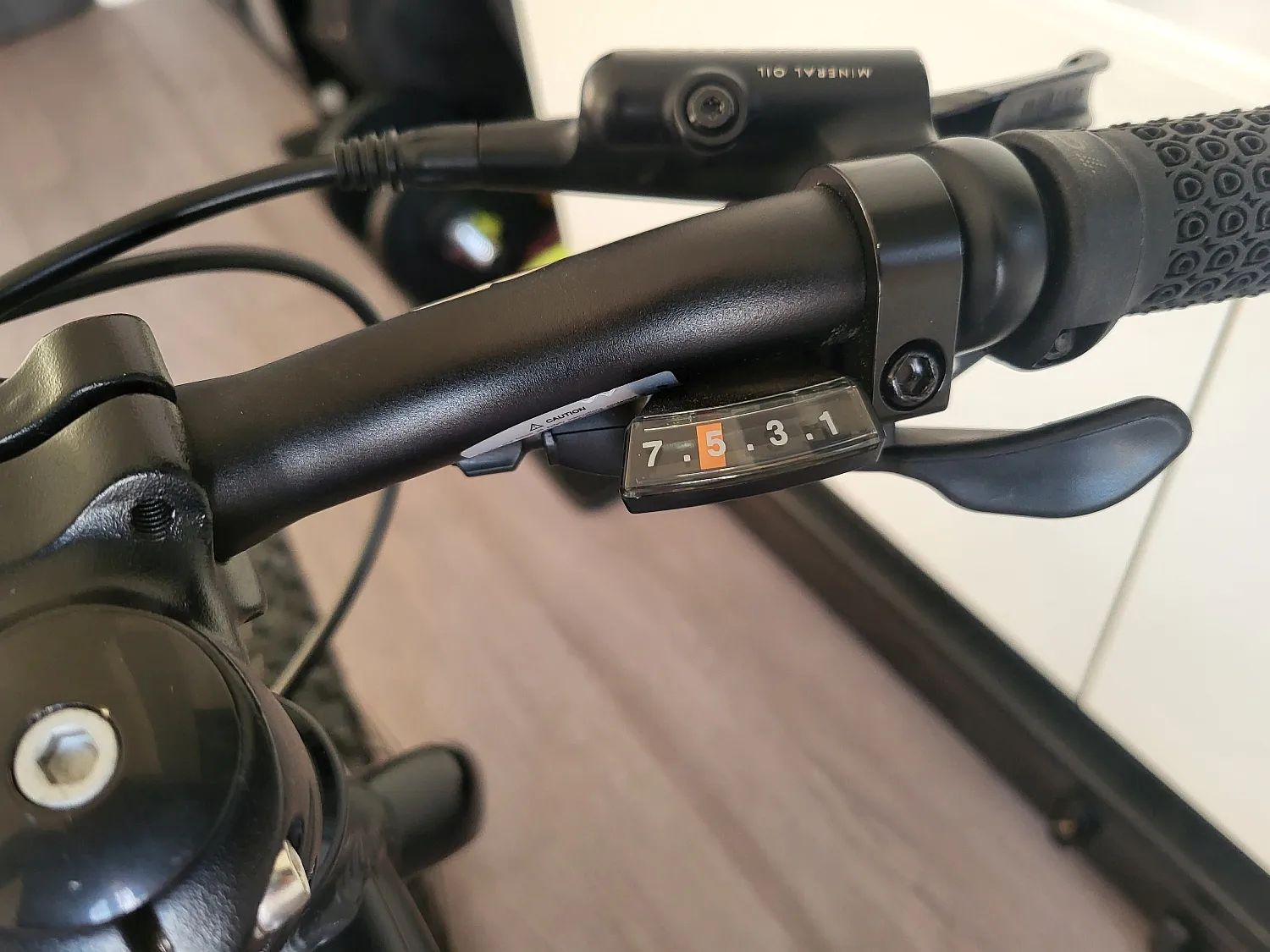 Kolo jsem předělal pro snažší ovládání na klasické páčkové řazeníé - původní revoshift (to slabší děcko absolutně nemůže utáhnout, navíc při jízde v kopci) přidám ke kolu.
