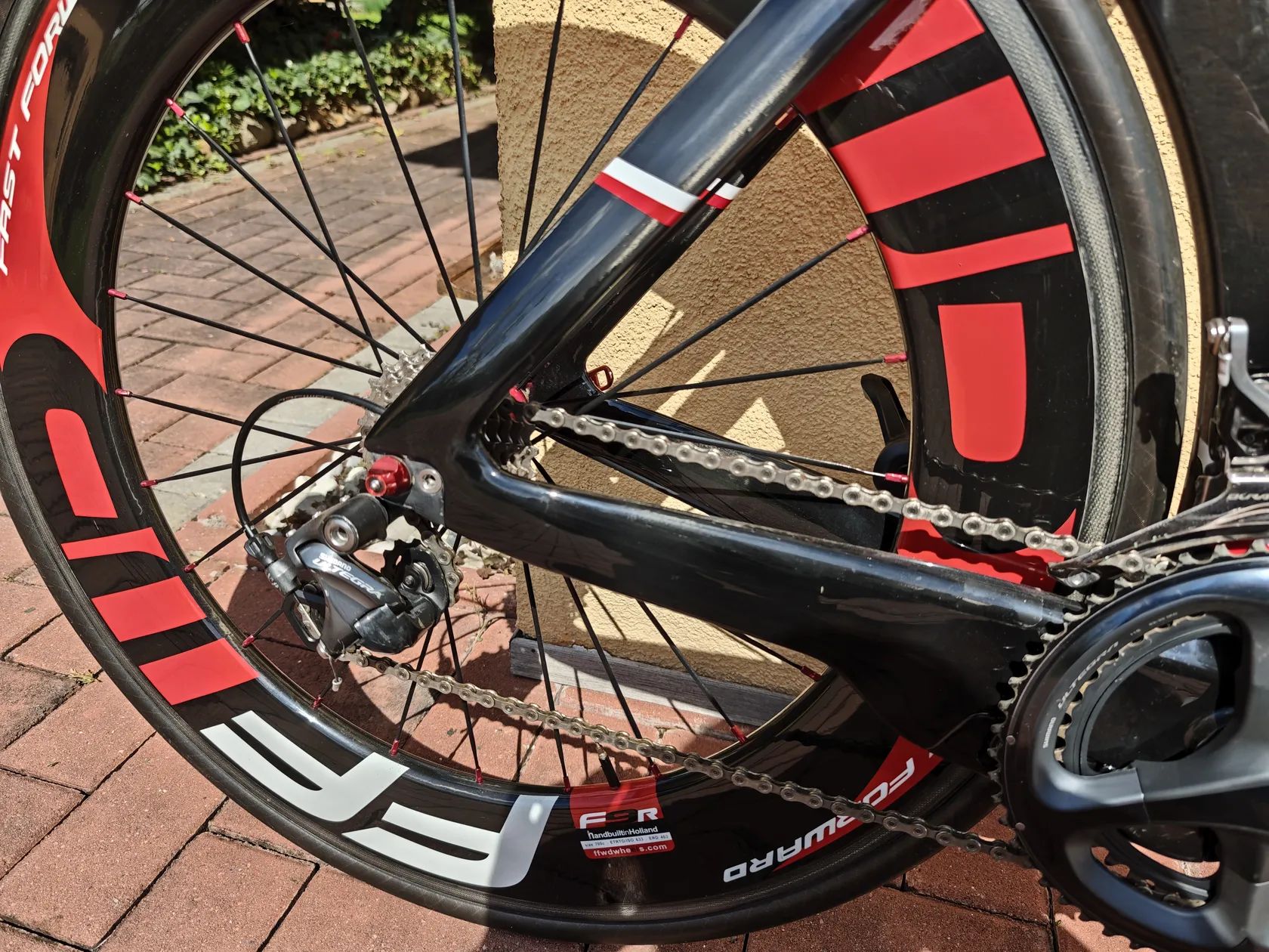 Prodám časkovkářské/triatlon kolo, najeto do 300km, odjety tři časovky v letech 2021-22. Vybavení mechanické SH ultegra/dura ace. Velikost na postavu 175 - 185. Já měřím 182cm. Kola s dizajnem FFWD 88mm, plášťová verze, náboje keramická ložiska, kola jetá s TT rámem. Vedení bovdenů je vnitřkem. Brzdy jsou aerodynamicky zasazeny do přední vidle a do rámu u středového složení. Převodníky 53/39, kazeta 11-25. Mohu přidat kazetu 11-28 a nepožitý malý převodník 36z. K celému kolu přidám i TT helmu. Kolo k vyzkoušení na jihu Čech případně dle domluvy. Kolo bylo postaveno na zakázku s původní cenou kolem 90tis, cenu nabídněte. Pro kolo nemám využití, jen mi doma stojí :-(