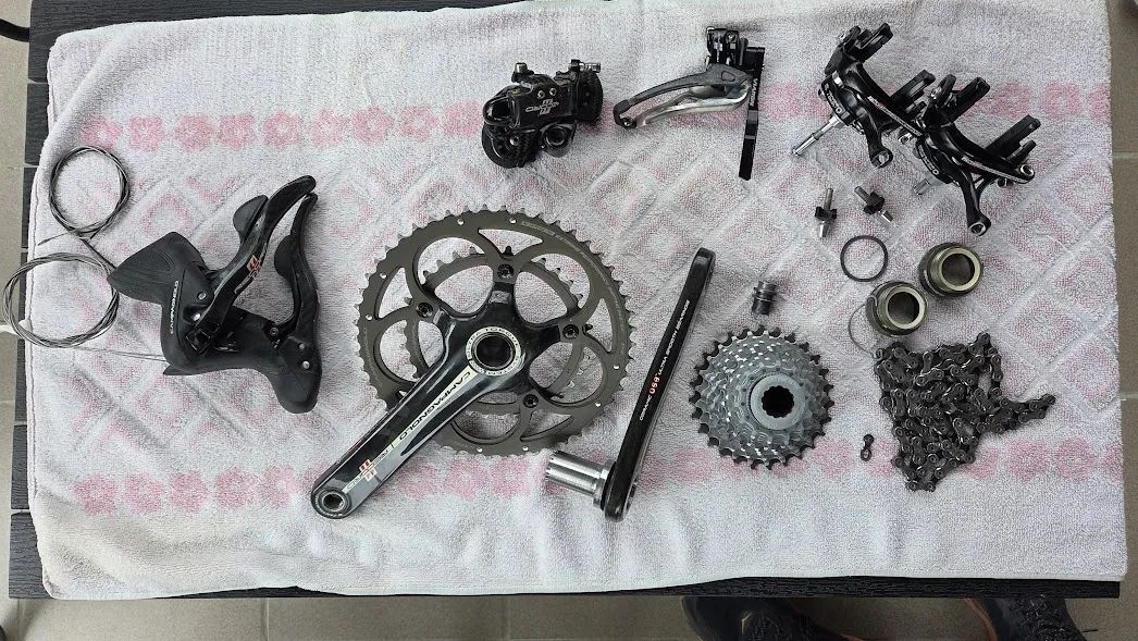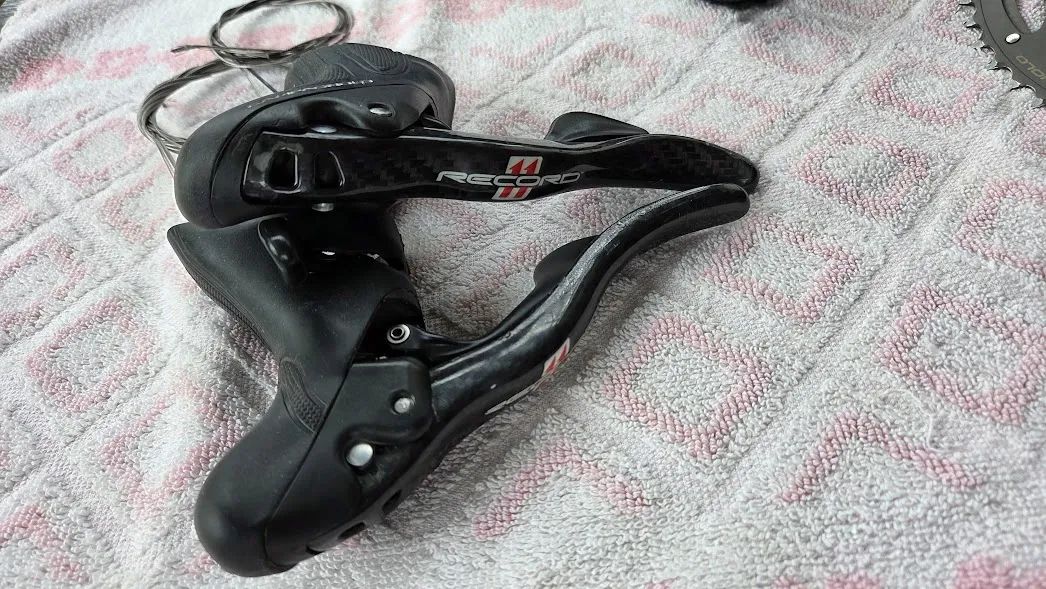 Predám sadu Campagnolo record 11s, model 2011-2014. Obsahuje: páky US, meniče, brzdy, kľuky UT s ložiskami, 172,5, 50/34, misky BSA, kazeta 14-27, reťaz. Sada je plne funkčná, nepoškodená, nejaký estetický šrámik sa však nájde. Viac info cez SS. Osobný odber, alebo na dobierku (Pošta, Packeta). Poštovné je v cene.