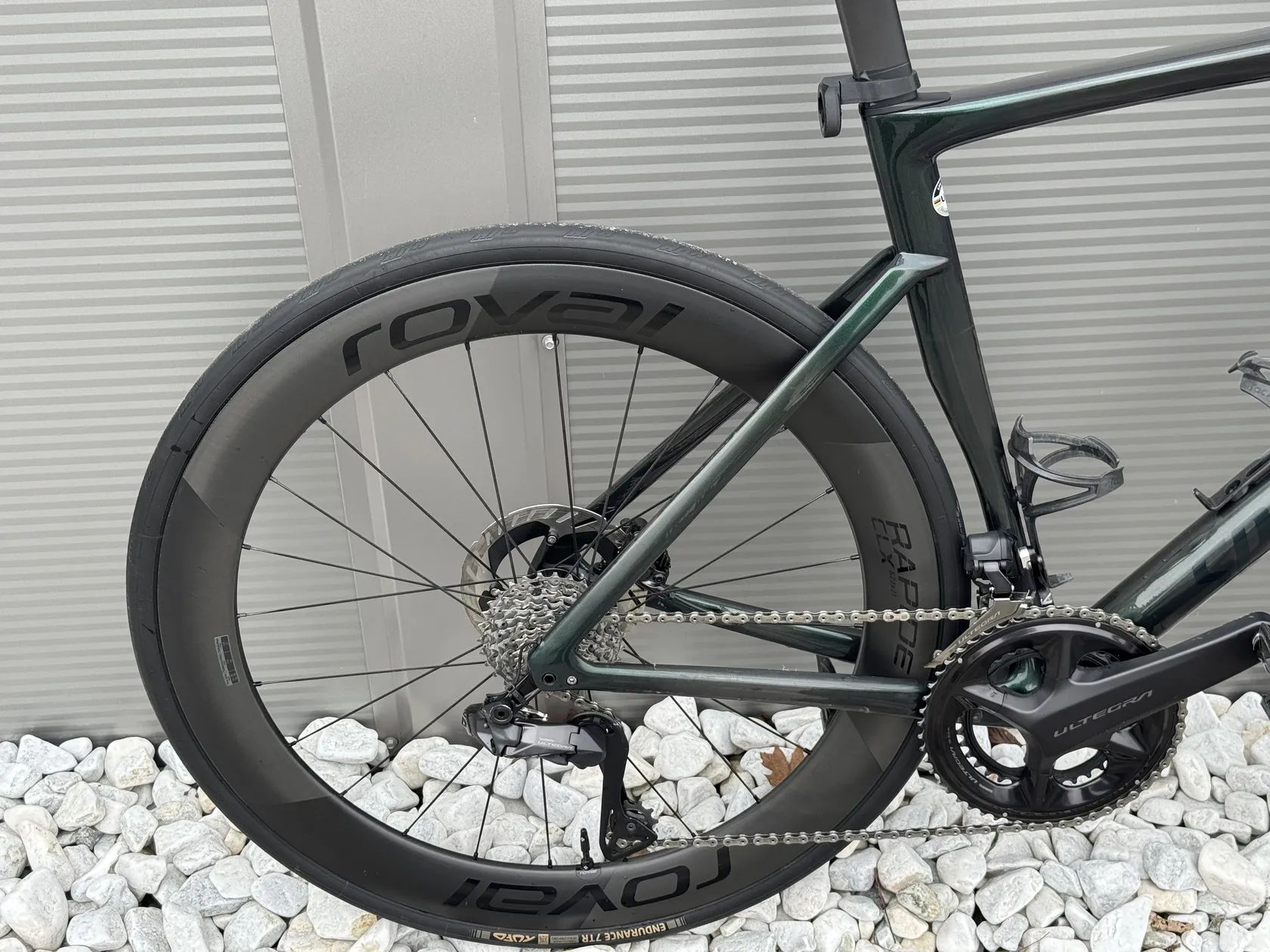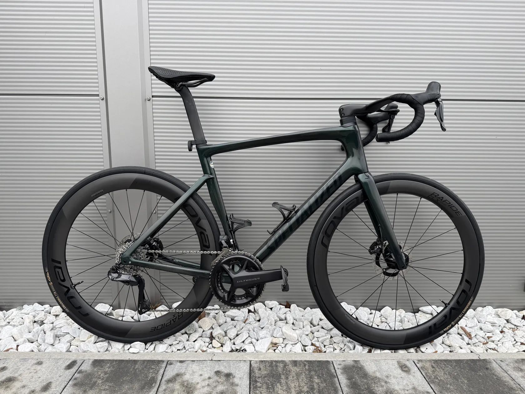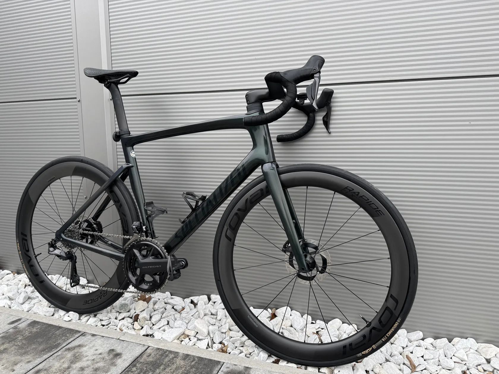 Kolo bylo pořízeno v září 2023, má za sebou dvě aktivní sezóny. Na jaře 2025 byly pořízeny nové výplety Roval Rapide CLX II a Roval Rapide Cockpit (420 mm / 100 mm). Osazeno pedály Dura-Ace. Tufo Endurace Tubeless 28mm najeto cca 1500km, držák Garmin, na sedlovce je 3D vytištěná objímka na radar Garmin.