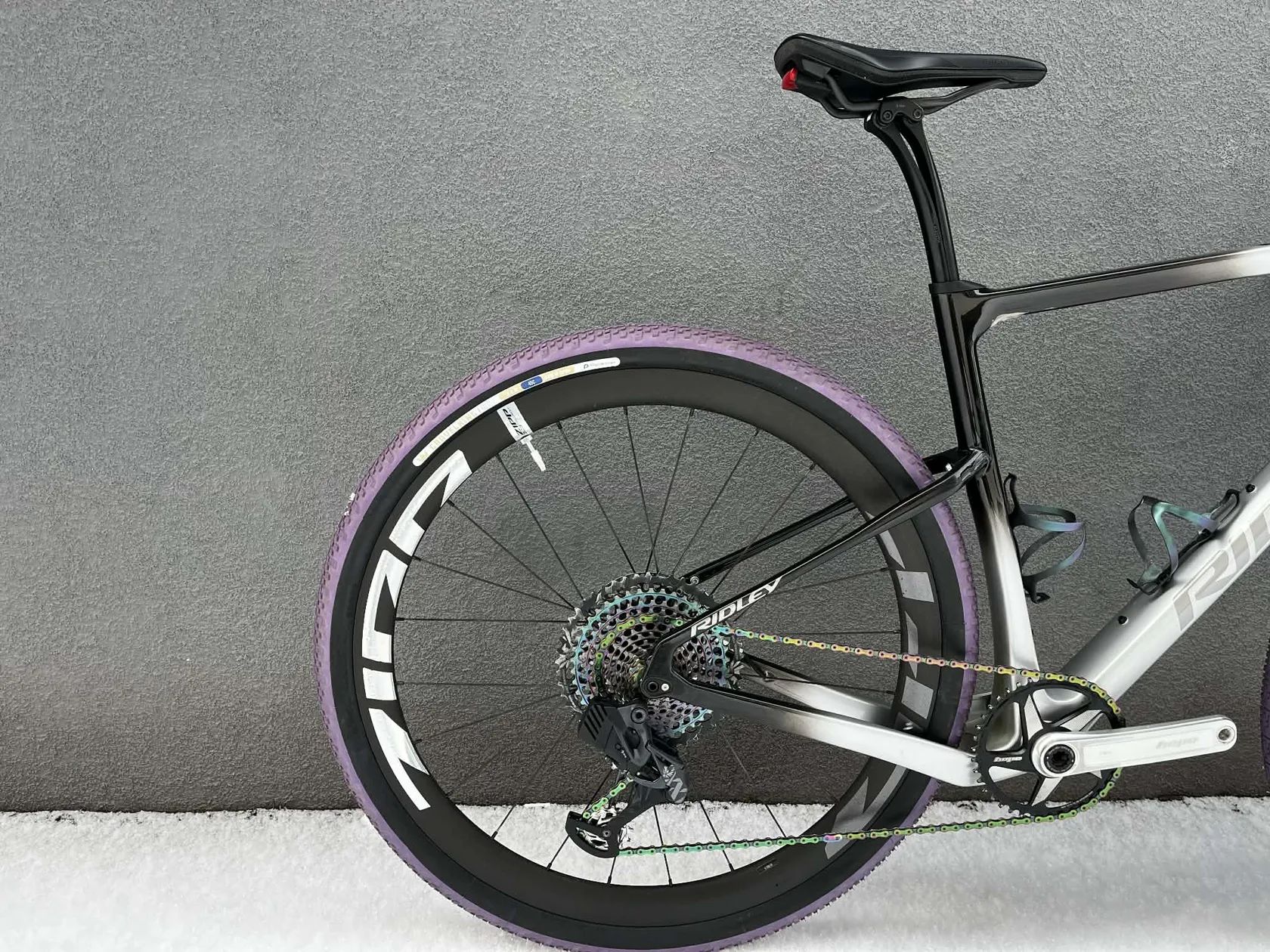 Dále kola Zipp 303 FireCrest Force Edition s lehce jetými plášti Panaracer Gravelking X1 Limited Purple 45C.