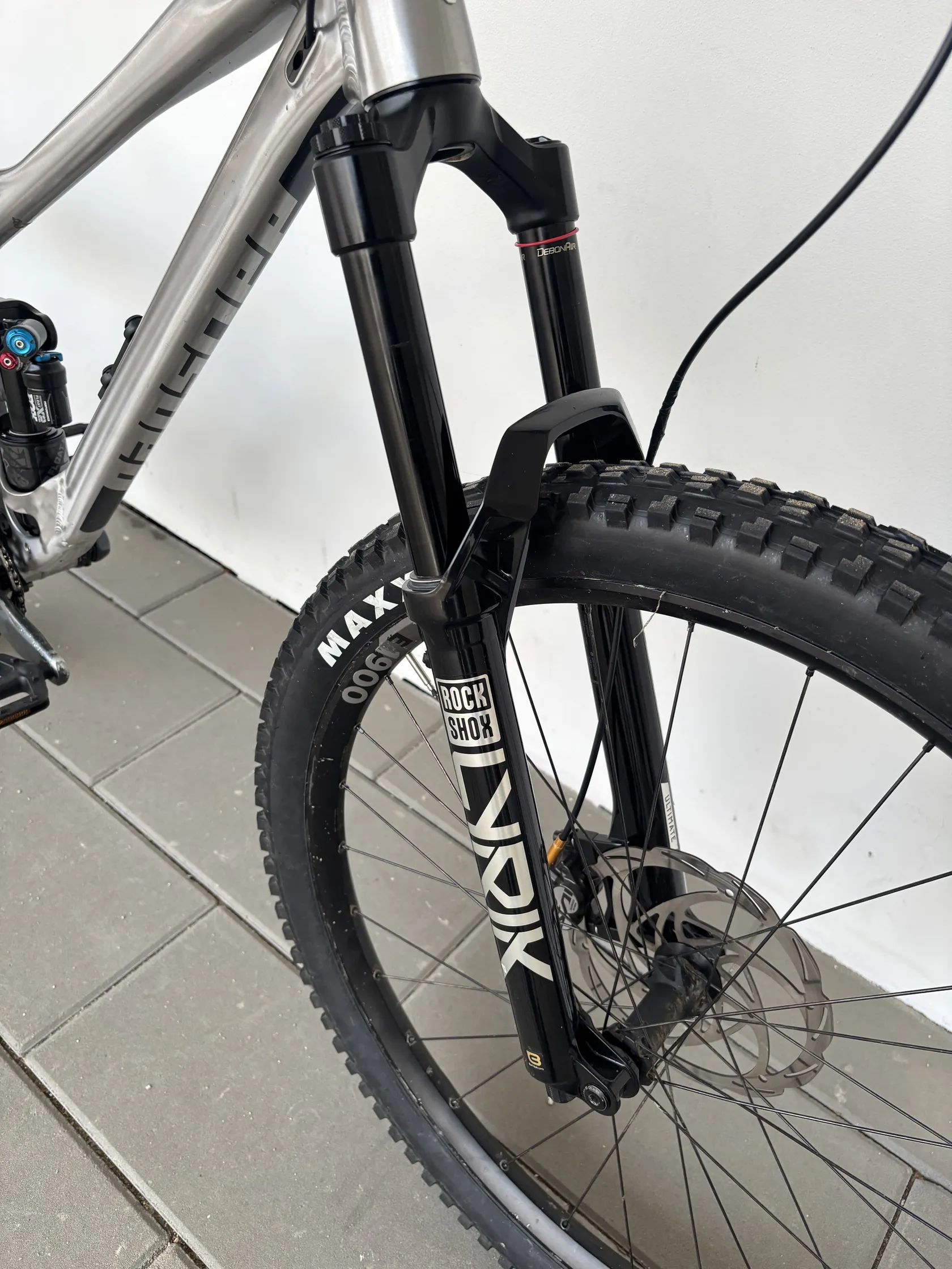 Přední vidlice RockShox Lyrik Ultimate – špičkový enduro model, zde minimálně jetý