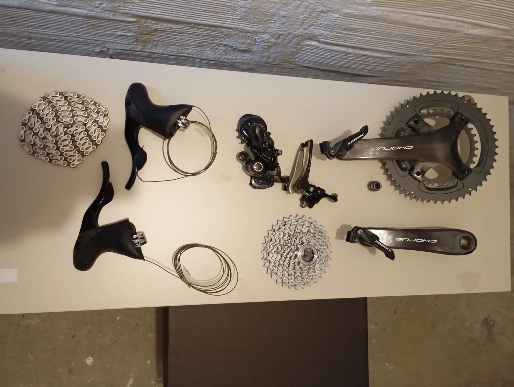 Prodám silniční sadu Campagnolo Chorus 12, kliky 50-34, presmykač navařka, kazeta 11-32, páky na brzdy jsou na klasické brzdy. Sada je jen sundaná z nového kola, perfektní stav.