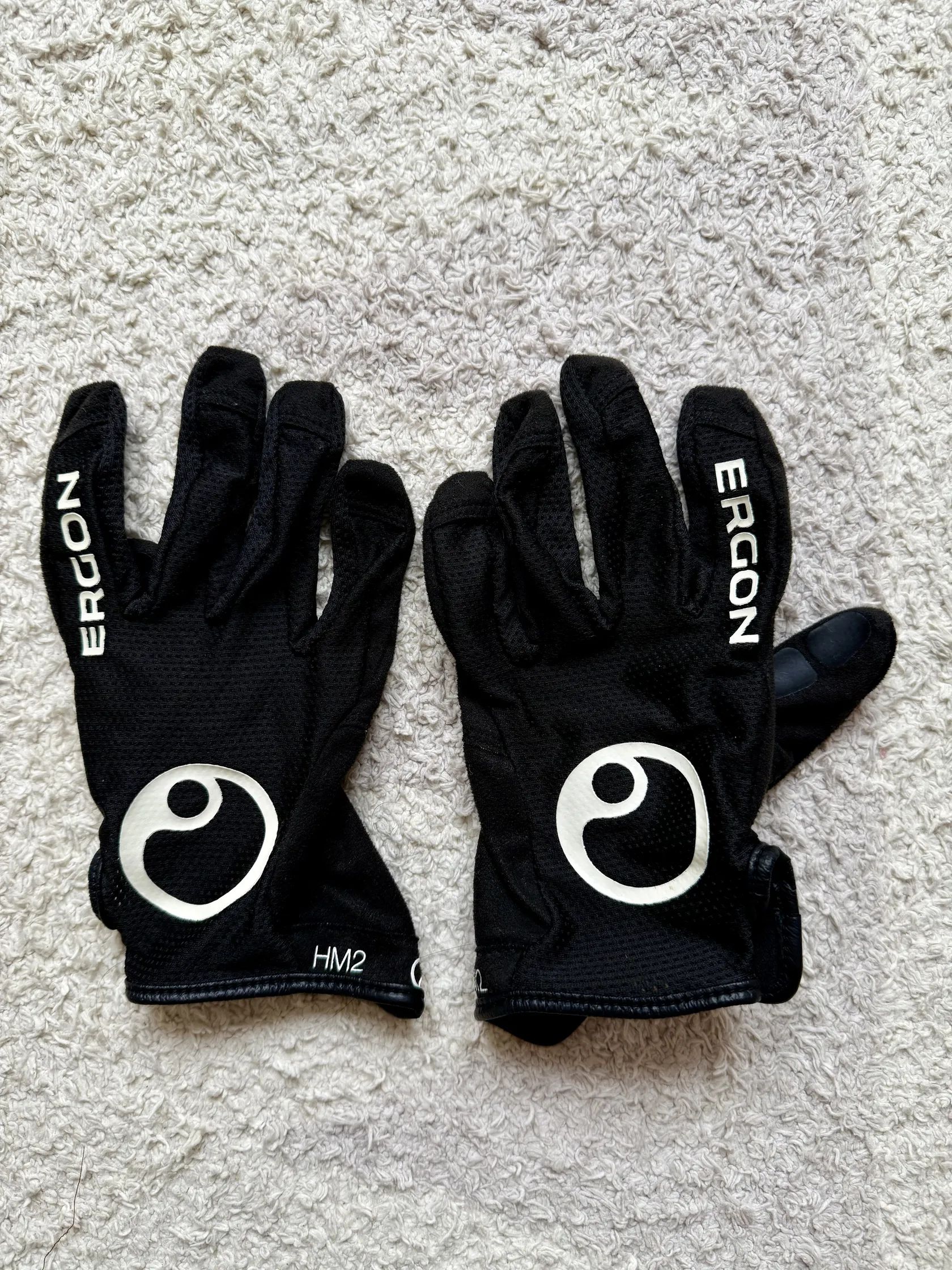 Cyklistické MTB rukavice Ergon HM2 - Černé velikost S. Párkrát použité, ale pořád ve velmi dobrém stavu. Jsou samozřejmě vyprané :) Původní cena 850kč