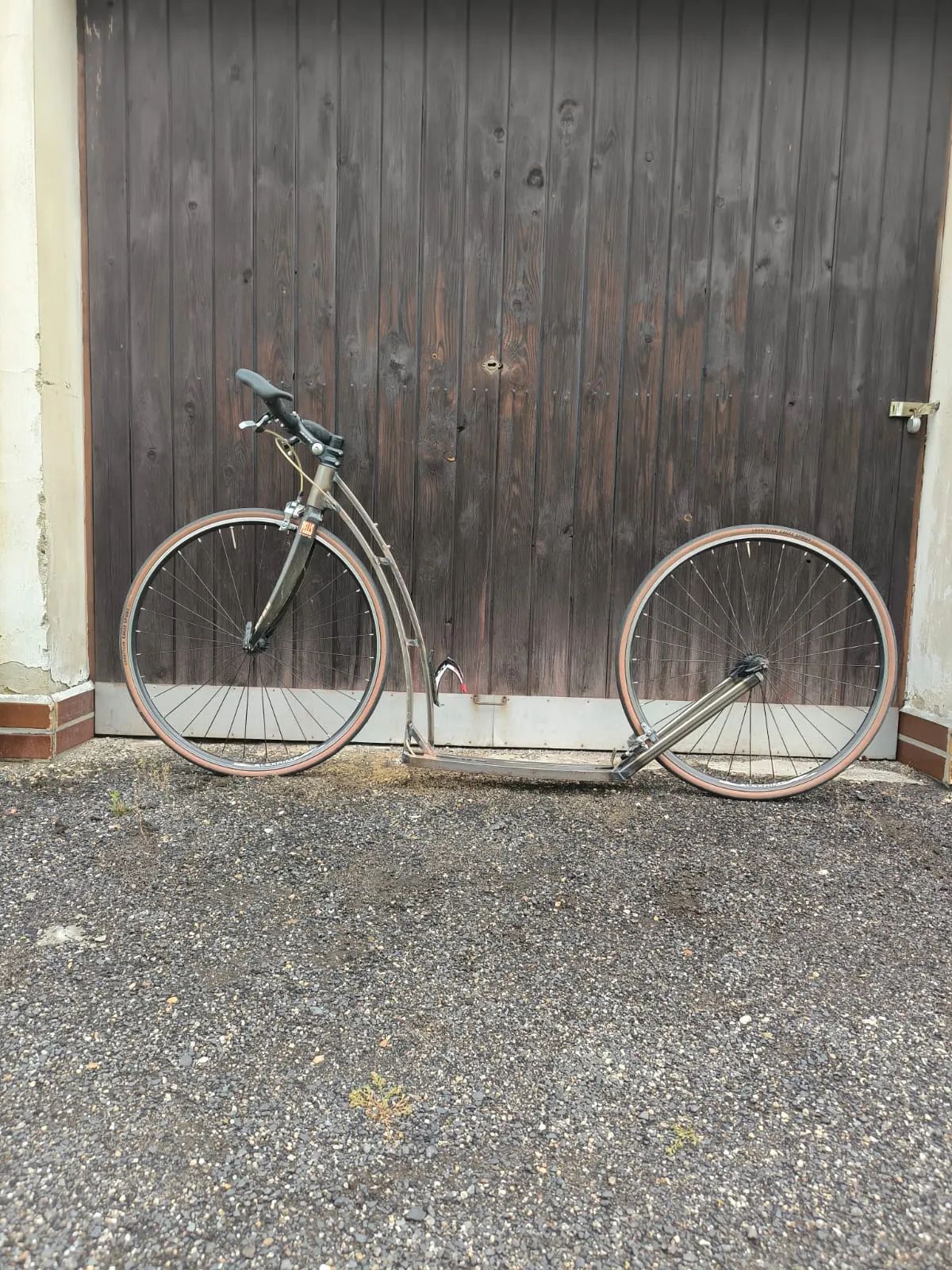 Prodám koloběžku Mibo Revoo, bezbarvý lak,brzdy Shimano 105, nové pláště Good Year Eagle Sport 25 mm