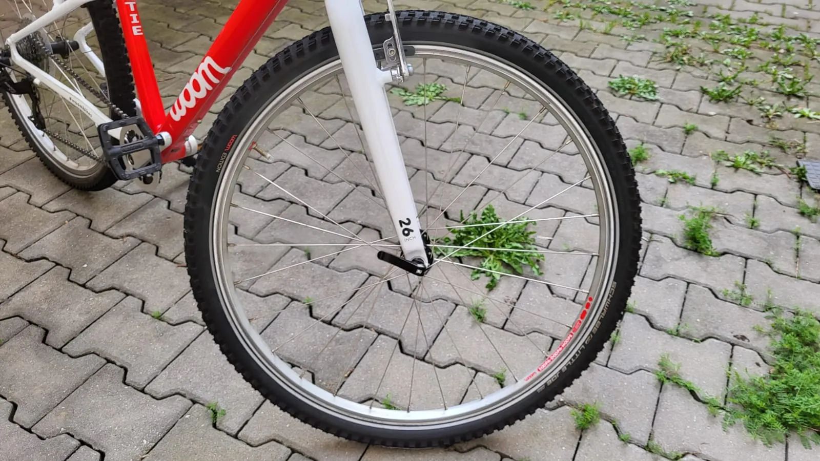 Hmotnost kolem 9,5 kg je u dětského 26" kola velmi příznivá