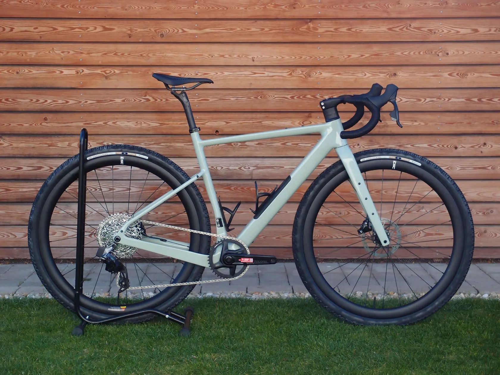 Komponenty: Rám: karbón, úložný priestor s magnetickým krytom FIDLOCK (+taštička na náradie) Riadidlá: karbónové integrované s predstavcom 420/490/80mm Sedlovka: karbónová elitaone 27,2mm, 20mm offset Sada: komplet el. sada Sram Rival AXS Xplr 1x12 Kľuky: Sram Rival 170mm, 40z Kazeta: Sram Rival 10-44z 12s Xplr Kolesá: karbónové 24 mm vnútorná šírka ráfiku, 40mm výška ráfiku, 1500g Kotúče: 2x 160mm Sram Centerline Plášte: Panaracer GravelKing X1 700x45C, TLR, kevlar + TPU ultralight duše Sedlo: Elita one EVA pena, karbón lyžiny 9x7mm