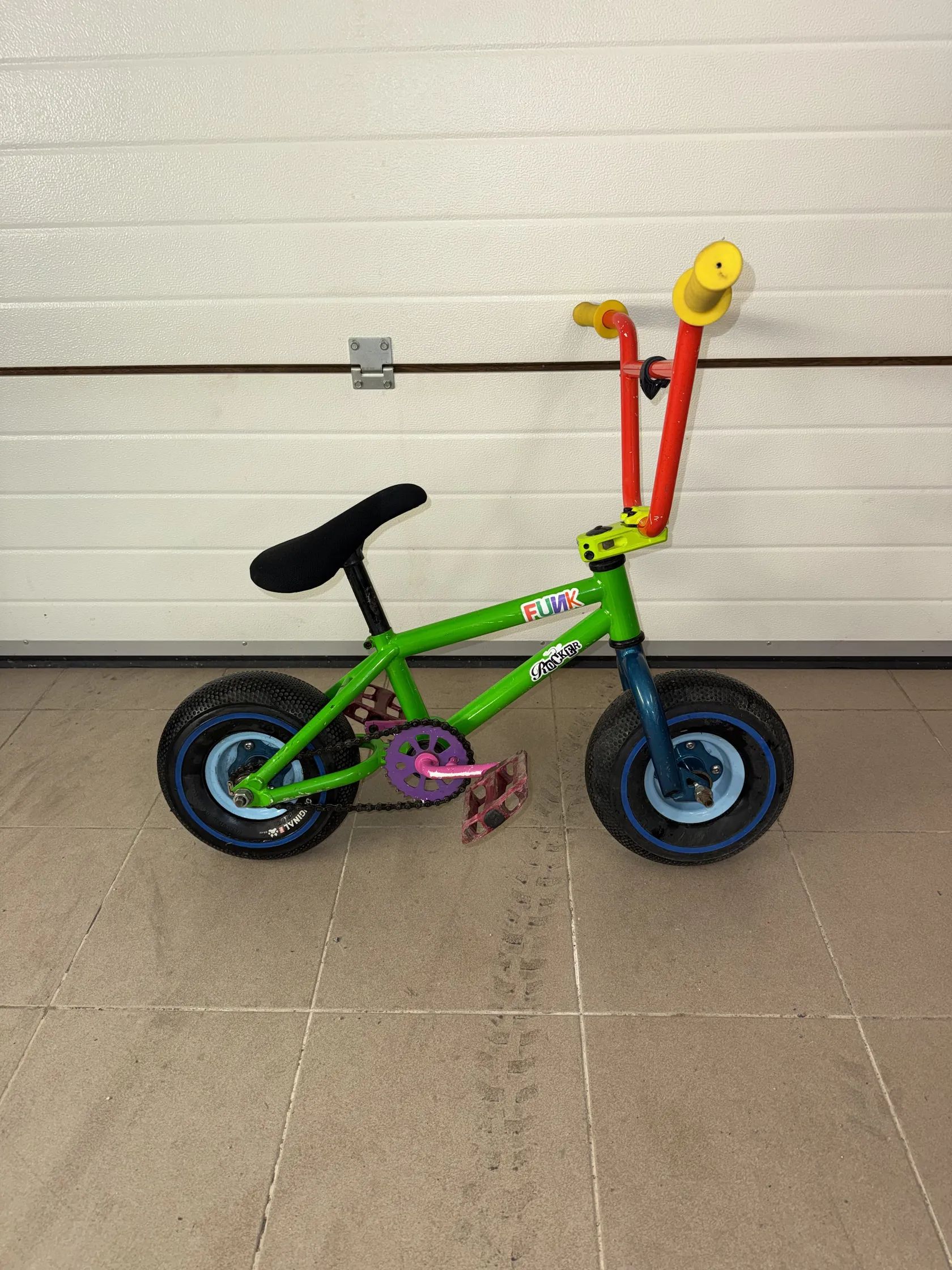Rocker Mini BMC Funk je zábavné a odolné mini BMX kolo, které nabízí autentický freestyle zážitek v menším provedení. Díky robustní konstrukci a dobré ovladatelnosti je ideální pro každého, kdo chce jezdit triky nebo jen stylově doplnit svou sbírku kol.