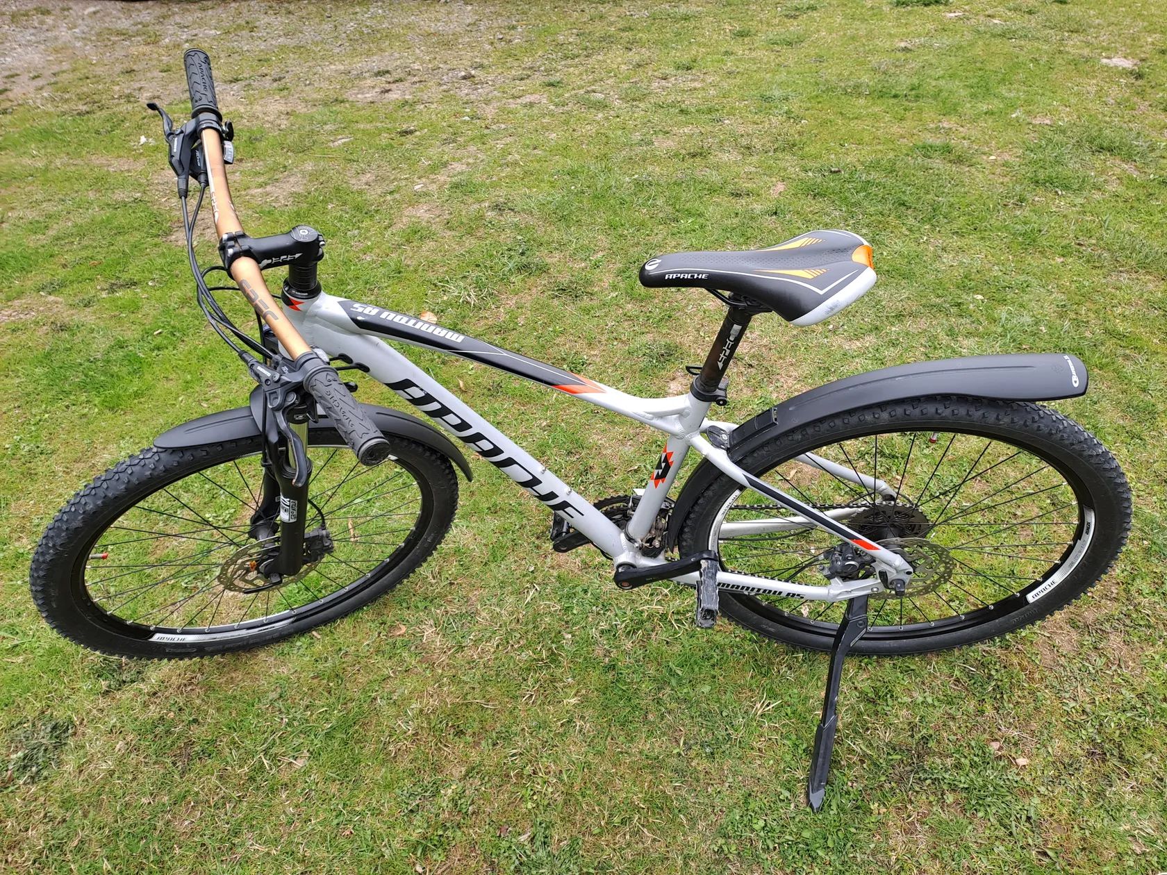 Prodám horské kolo Apache Manitou A5. Kolo je po dceři, ježděno převážně do školy a na rodinné výlety. Hliníkový rám velikost S (17", 432 mm) Přehazovačka Shimano Acera 3x9 Hydraulické kotoučové brzdy Shimano. Kolo je i se stojánkem a blatníky.