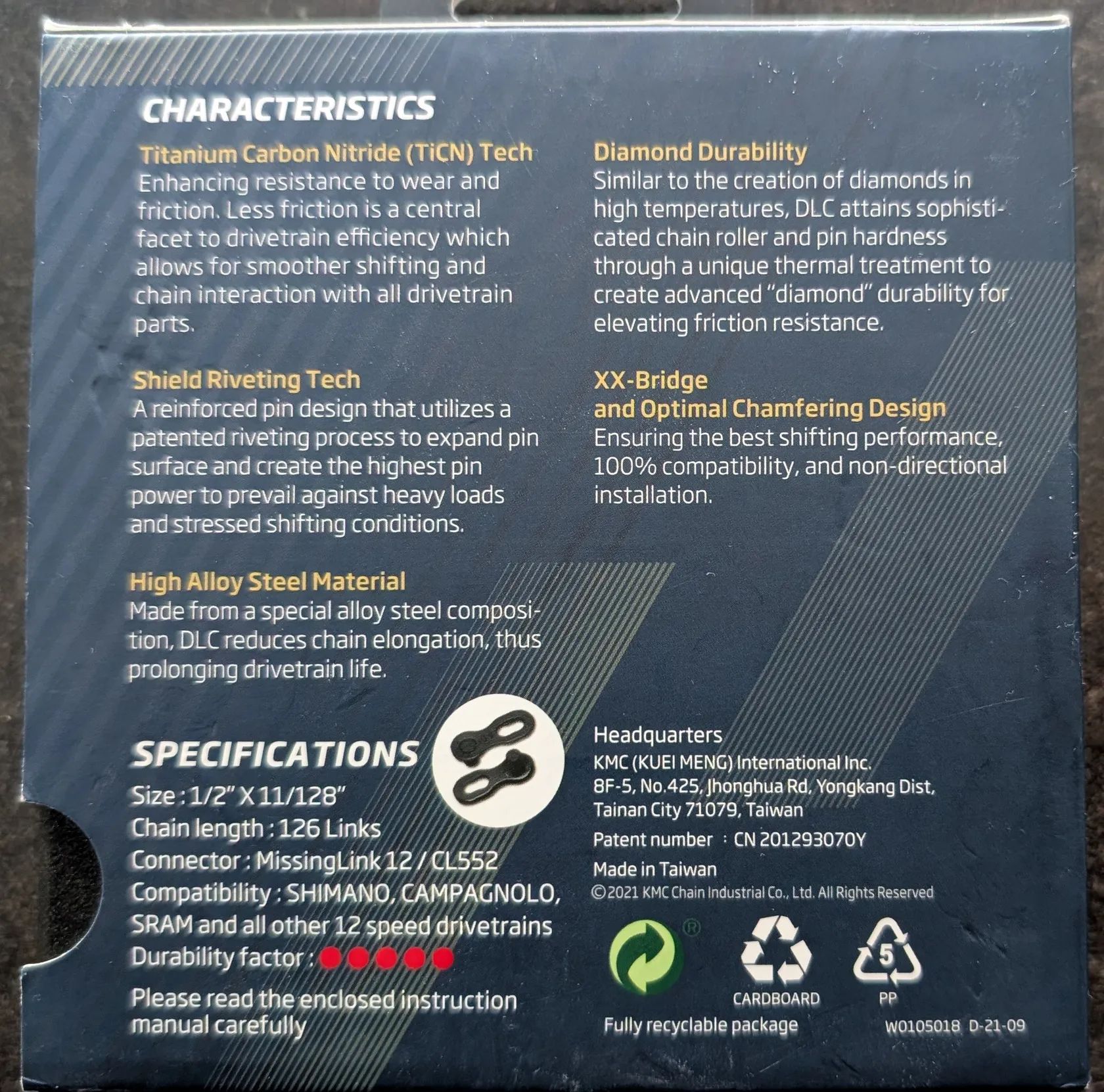 Mám na prodej téměř nepoužitý (asi 50km) řetěz KMC DLC 12 Black řetěz, 109 článků + spojka. (zkrácený na Shimano Ultegra 50/34 + kazeta 11-32 na rámu 56) Lehký a odolný řetěz vhodný pro 12rychlostní sady, ideální pro silniční i gravel použití. Beěžná retail cena 2790 Kč