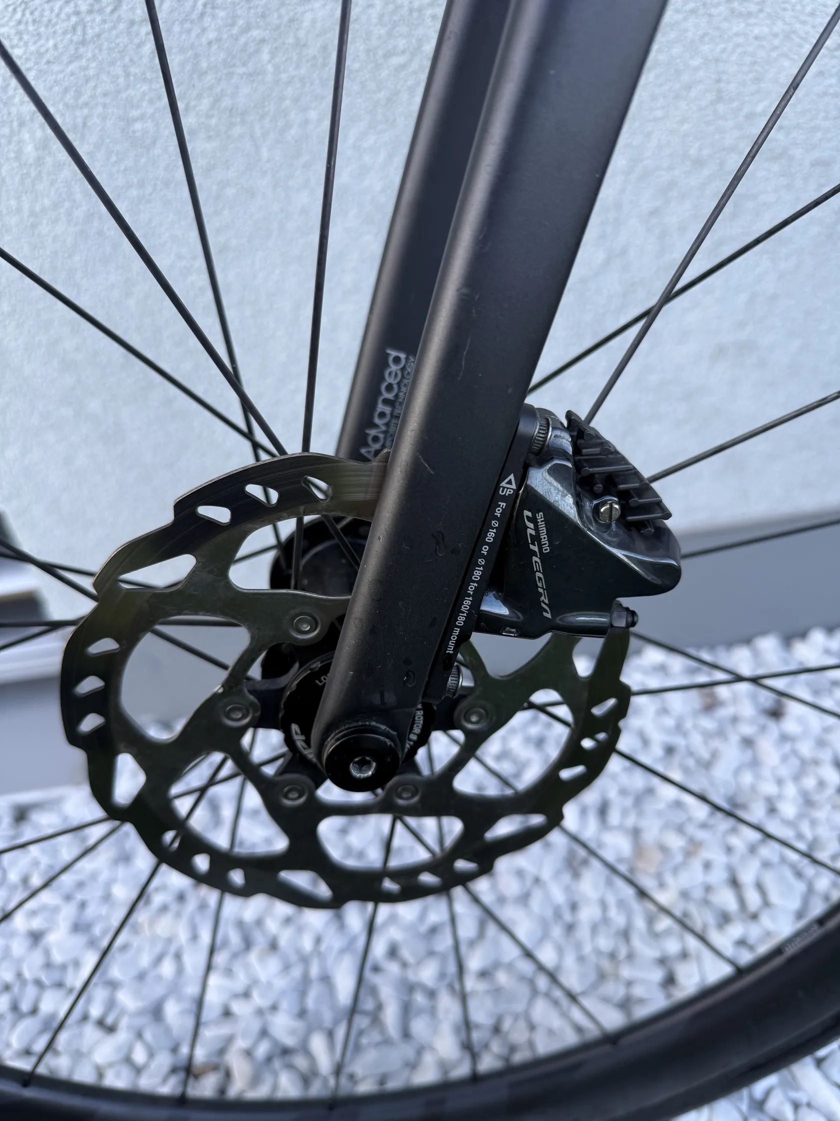 Specifikace: velikost rámu XL (cca pro postavu 185–195 cm), nastaveno na 189 cm sada Shimano Ultegra hydraulické kotoučové brzdy karbonová kola Zipp 303 S držáky na 2 bidony držák na tachometr