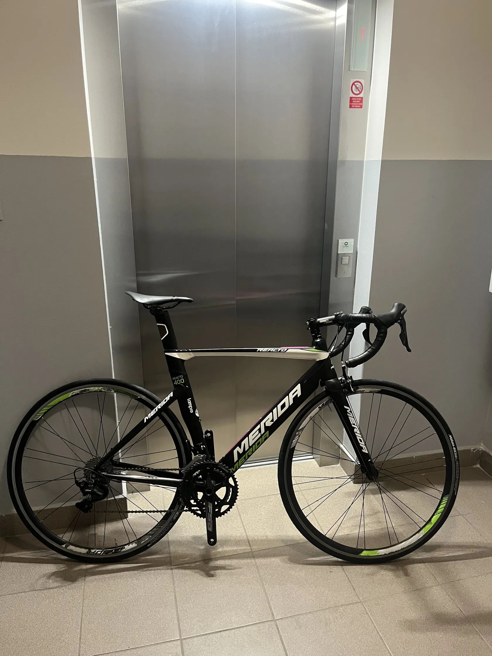 Nabízím k prodeji tuhou a rychlou aero silničku v ikonických barvách profi stáje Lampre-Merida. Kolo je postavené na špičkovém hliníkovém rámu s technologií vnitřního vedení lanek a karbonovou vidlicí a sedlovkou. Pohon Shimano 105 5800 (2x11). Na kole jsou úplně nové top pláště Mitas Arrow racing pro.