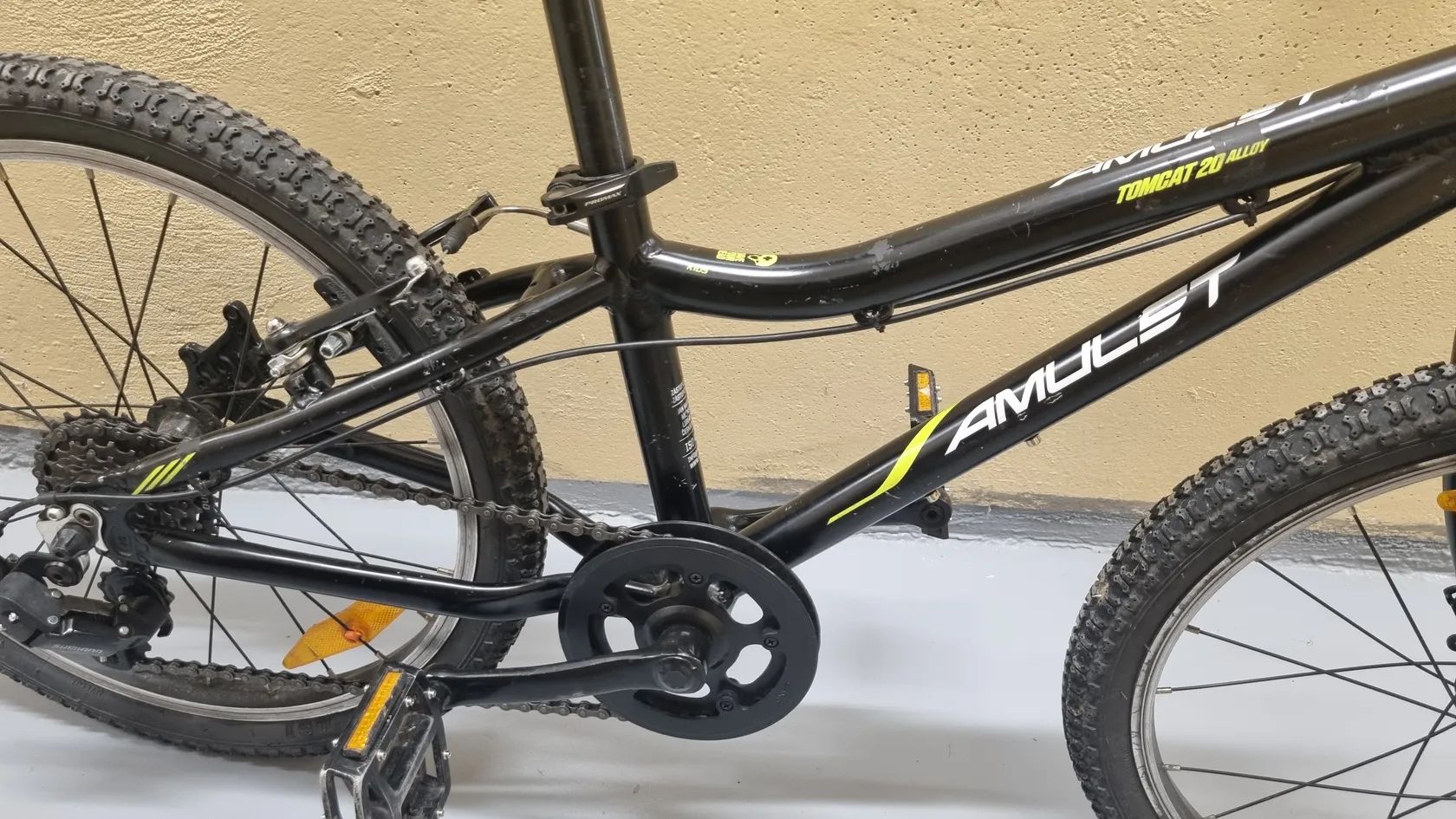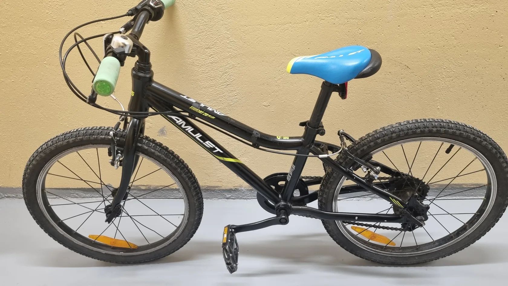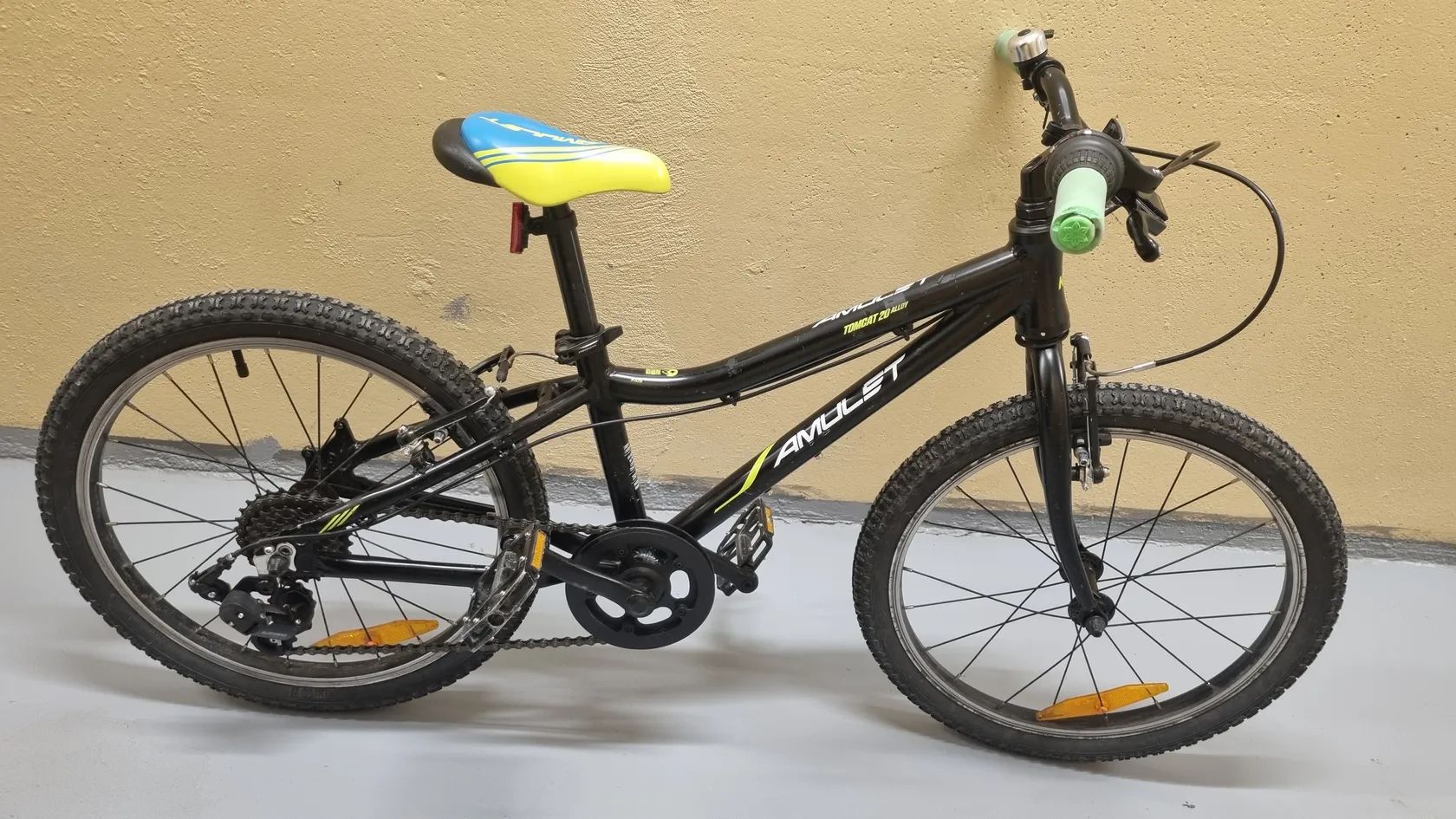 Prodám dětské kolo Amulet Tomcat 20. Hliníkový rám, 6 rychlostní Shimano RevoShift, V‑brzdy. Kolo je plně funkční, řadí i brzdí bez problémů. Stav: běžné kosmetické oděrky z používání, nic, co by ovlivnilo jízdu (viz foto).