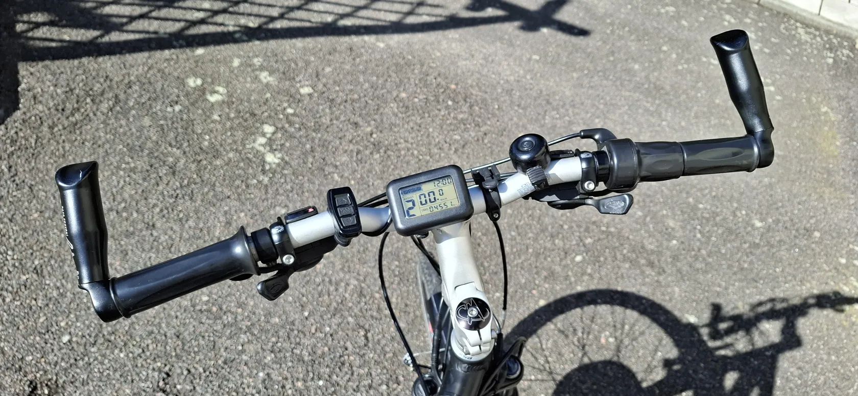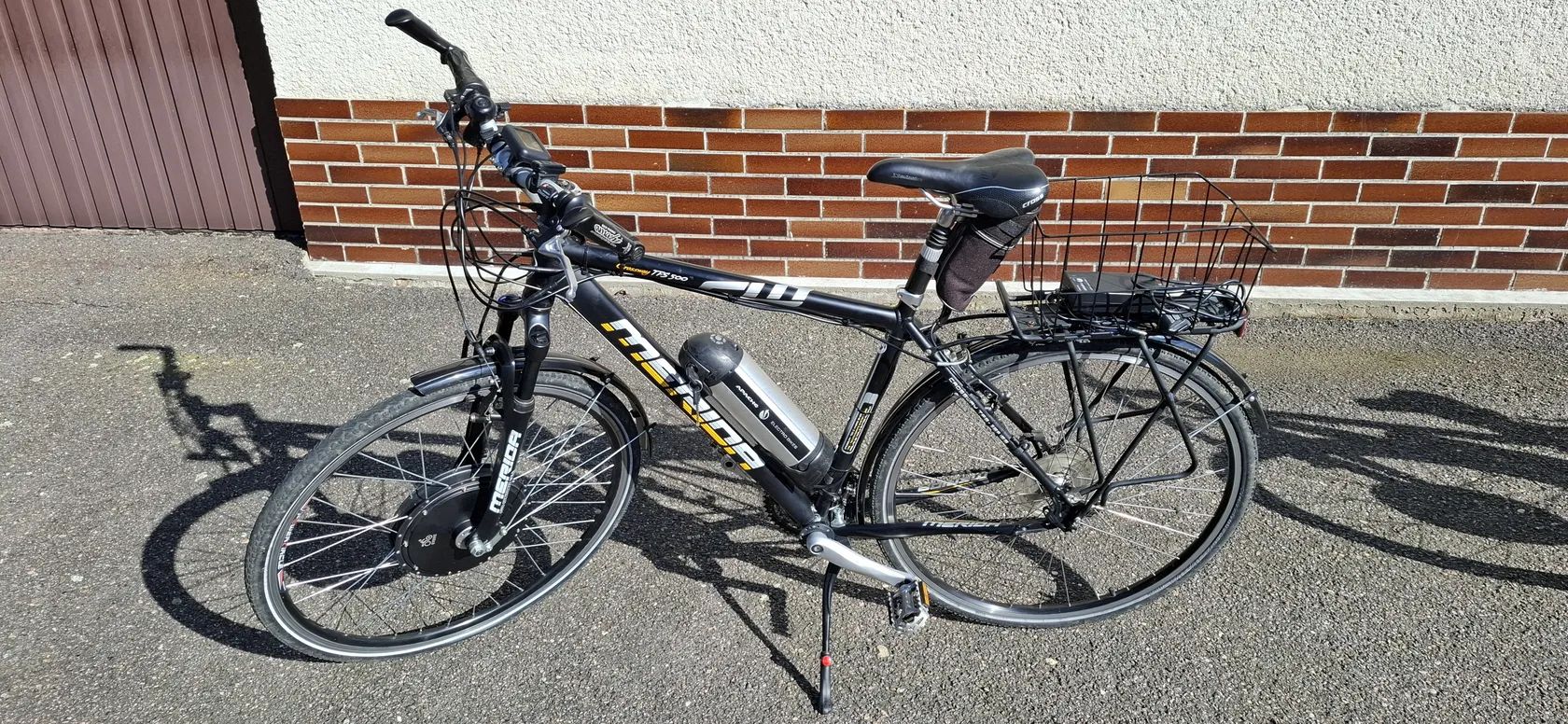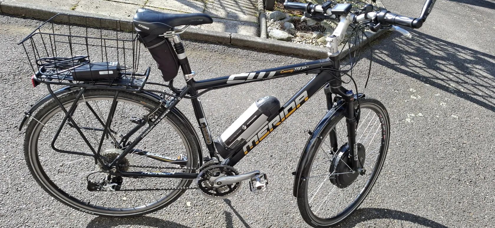 • Oblíbené krosové kolo vhodné na delší výlety, je pohodlné. • Vidlice SR NCX-D-LO 63 Lockout • Kliky Shimano M443 • Přesmykač Shimano Deore 31.8 T-Swing • Řazení Shimano XT Top Normal • Převody: 3 x 8 • Brzdy Avid Single Digit 5 • Brzdové páky Avid • Sedlovka Suspension 27.2 • Blatníky • Stojánek • Zadní nosič • Hmotnost pouze 23 kg • Elektropohon: EVBIKE na přední kolo • Elektromotor 500W (omezeno regulátorem na 250W) • Akumulátory: Lithiové 36V 10Ah (stáří 1 rok), + nabíječka (dojezd cca 50 km) • Navíc ke každému kolu baterie vhodná k repasu.