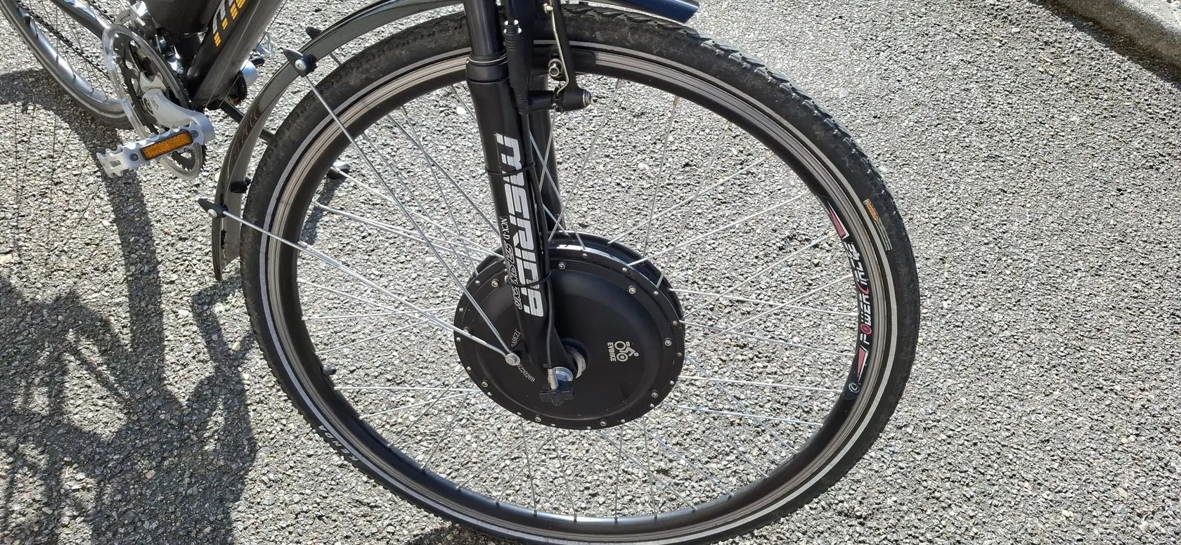 Dodatečně osazené elektropohonem EVBIKE s předním nábojem – z běžného krosového kola udělané praktické elektrokolo