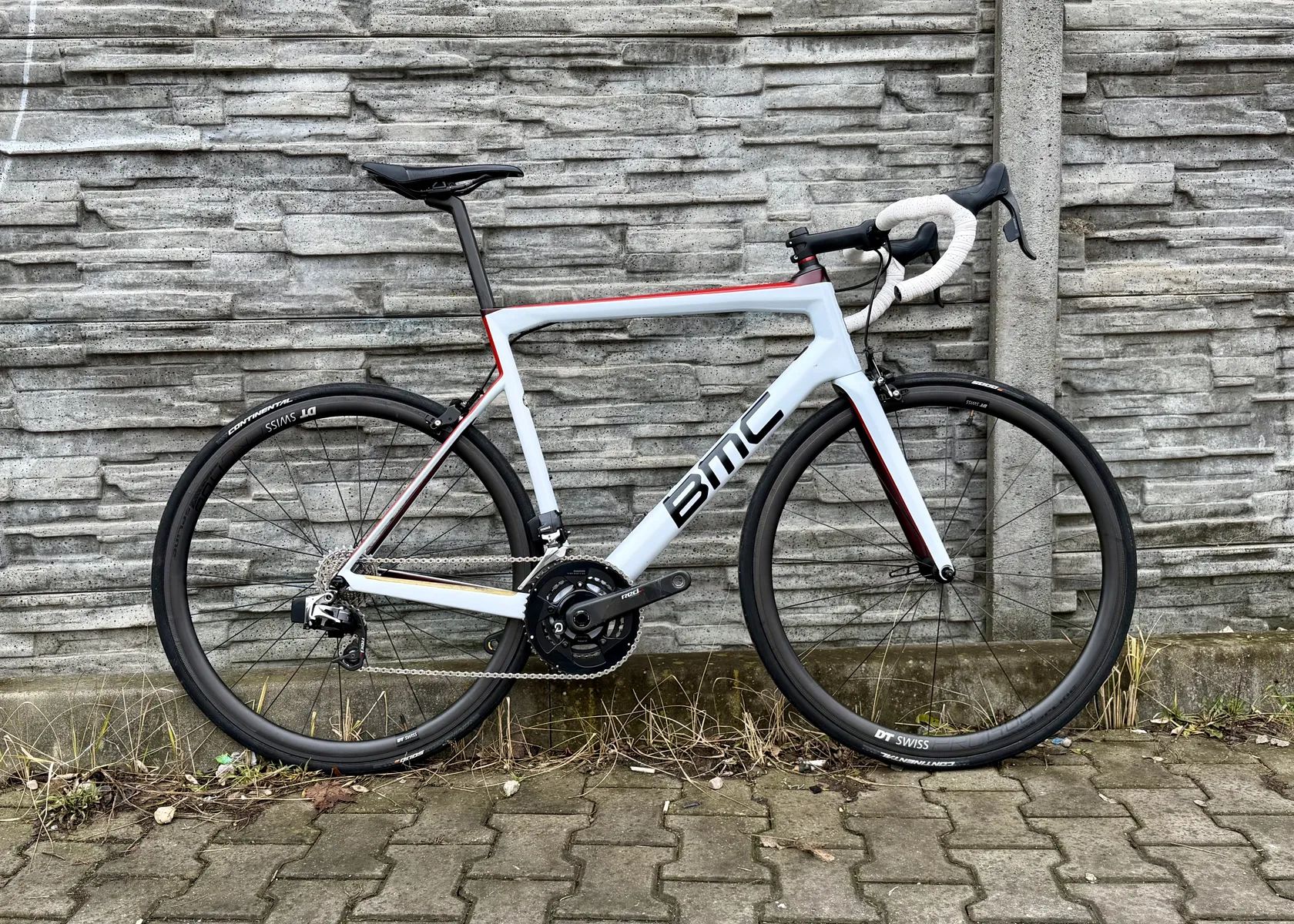 Rám: BMC Teammachine SLR01 | ACE Technology - 01 Premium Carbon, vel. 58 Řadící a brzdové páčky: SRAM RED eTap Přehazovačka: SRAM RED eTap Přesmykač: SRAM RED eTap Kazeta: SRAM XG-1190, 11-28z. Kliky: SRAM RED 50-34z, wattmetr Quarq Brzdy: TRP T980 | direct mount Zapletená kola: DT Swiss PRC 1400 SPLINE 35 Carbon Pneu: Continental 5000 700x25c Sedlo: Specialized Carbon Rails Sedlovka: Teammachine SLR01 "D" Premium Carbon Řídítka: 3T Ergonova Team Carbon, nová omotávka Fizik Představec: BMC RSM01 | w/ computer and camera mount