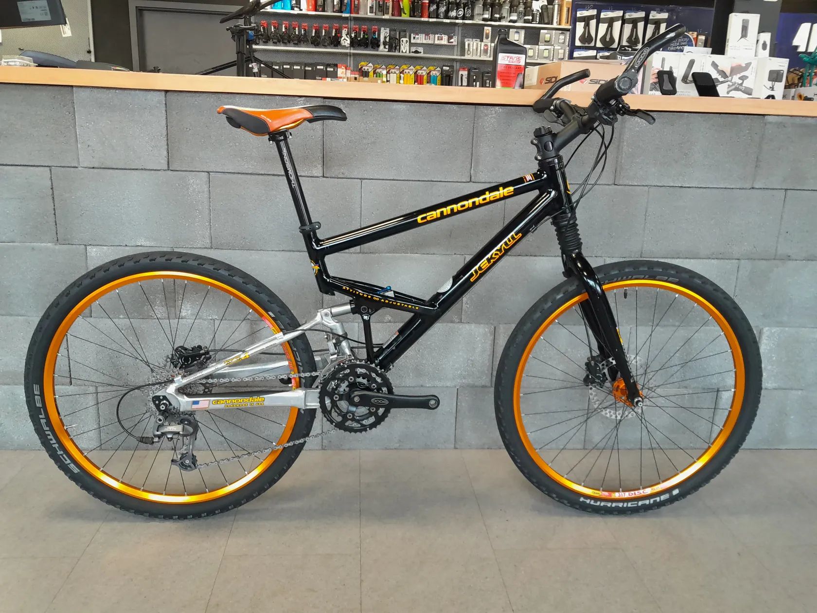 Prodám Cannondale Jekyll 3000 SL z roku 2000. První generace Jekyllu z prvního roku uvedení v nejvyšší možné specifikaci. Celé kolo je ve skvělém stavu, včetně technického. Tlumič i vidlice Fatty drží vzduch i olej a zamykají natvrdo. Kompletní osazení dle katalogukrome brzd Shimano. Kola na nábojích CODA 901 Competition s originál ráfky v oranžovém eloxu. Kompletní řazení XTR generace M950 včetně kazety XTR. Kliky s originálními převodníky. Původní gripy i rohy CODA. Sedlo CODA 3000 a sedlovka Thomson. Vše důležité je vidět na fotkách, v případě dotazů mne prosím kontaktujte. Budoucí servis vidlice je možné u 4 KLUCI OD KOL.