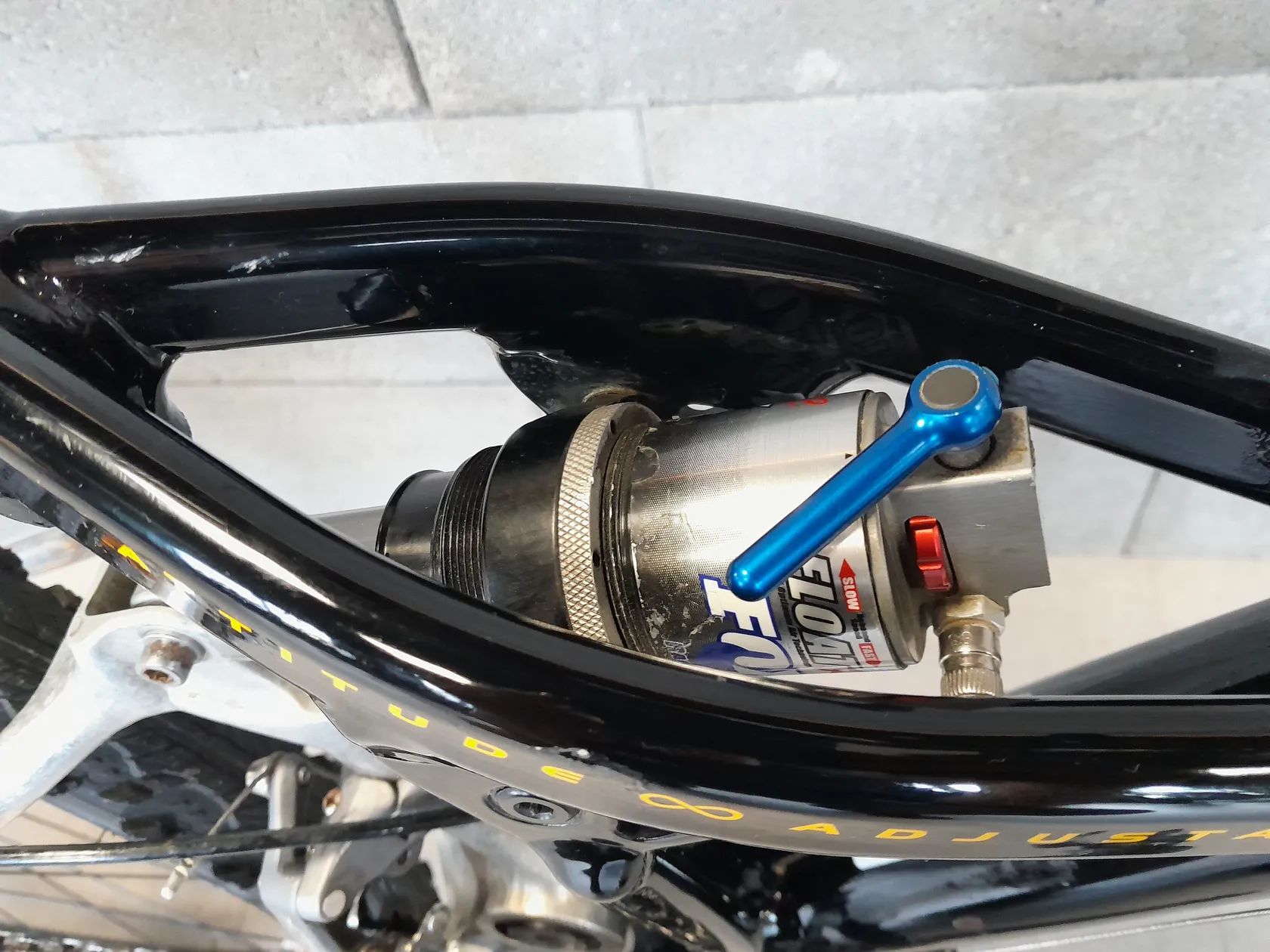Originální tlumič a vidlice Cannondale Fatty – funkční, drží vzduch i olej, plně zamykatelné.