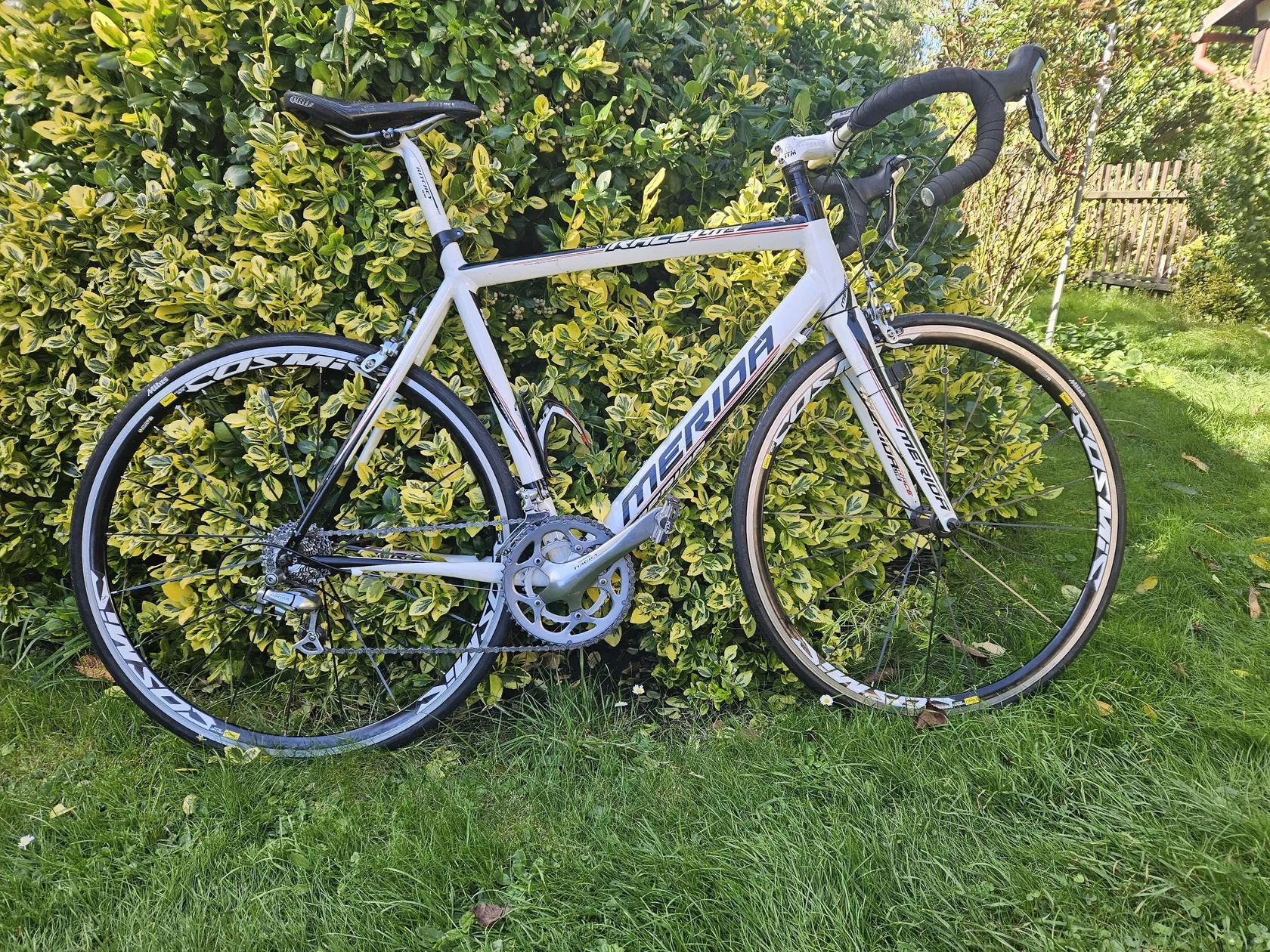 Prodám Meridu Race Lite velikost L, Rám ALU - LIGHT, Vidlice karbon, výbava Shimano Tiagra 9 speed - Kliky 50*34z, kazeta 11-27z. Zapletená kola Mavic Cosmic. Délka představce 9cm. Bezdrátový computer Sigma, košík na bidon. Nové pneumatiky, nové duše! Řětěz a ložiska vše v pořádku. Bez investic.