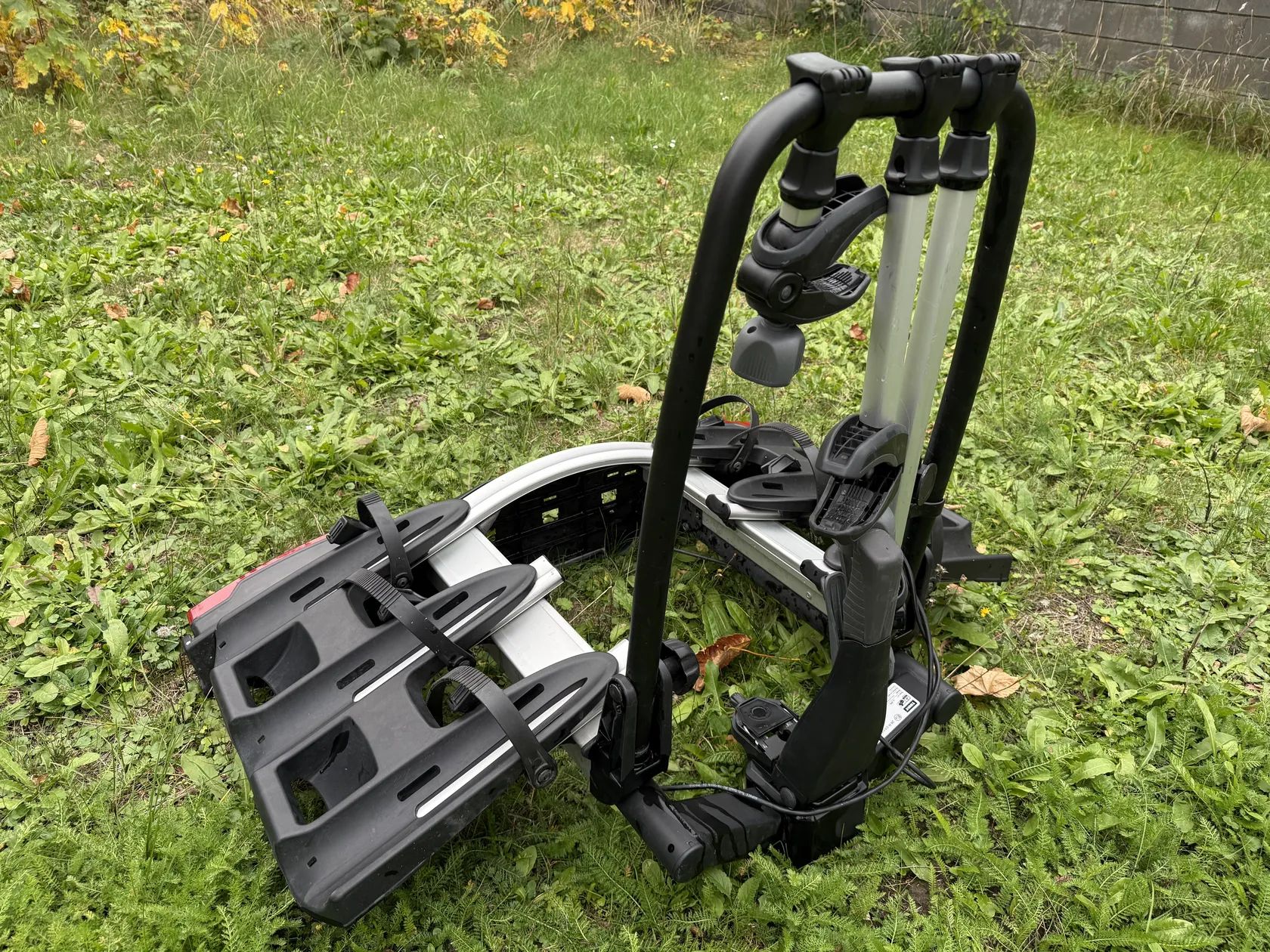 Thule VeloCompact je plošinový nosič kol na tažné zařízení pro 3 kola, 13-pinová zásuvka. Nosič a jednotlivá ramena jsou uzamykatelná.