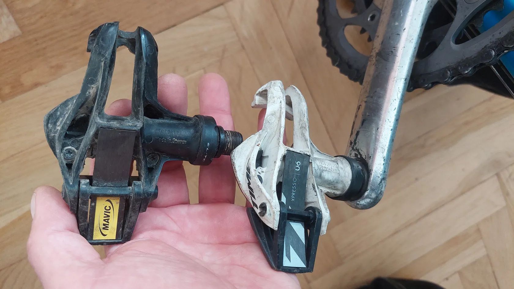 Koupím Levý pedál time expresso 6, nebo mavic, nevím jak to mají pojmenovaný. Mám 2 pravý, Levý se lame :)