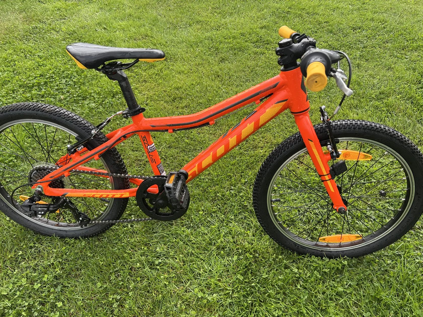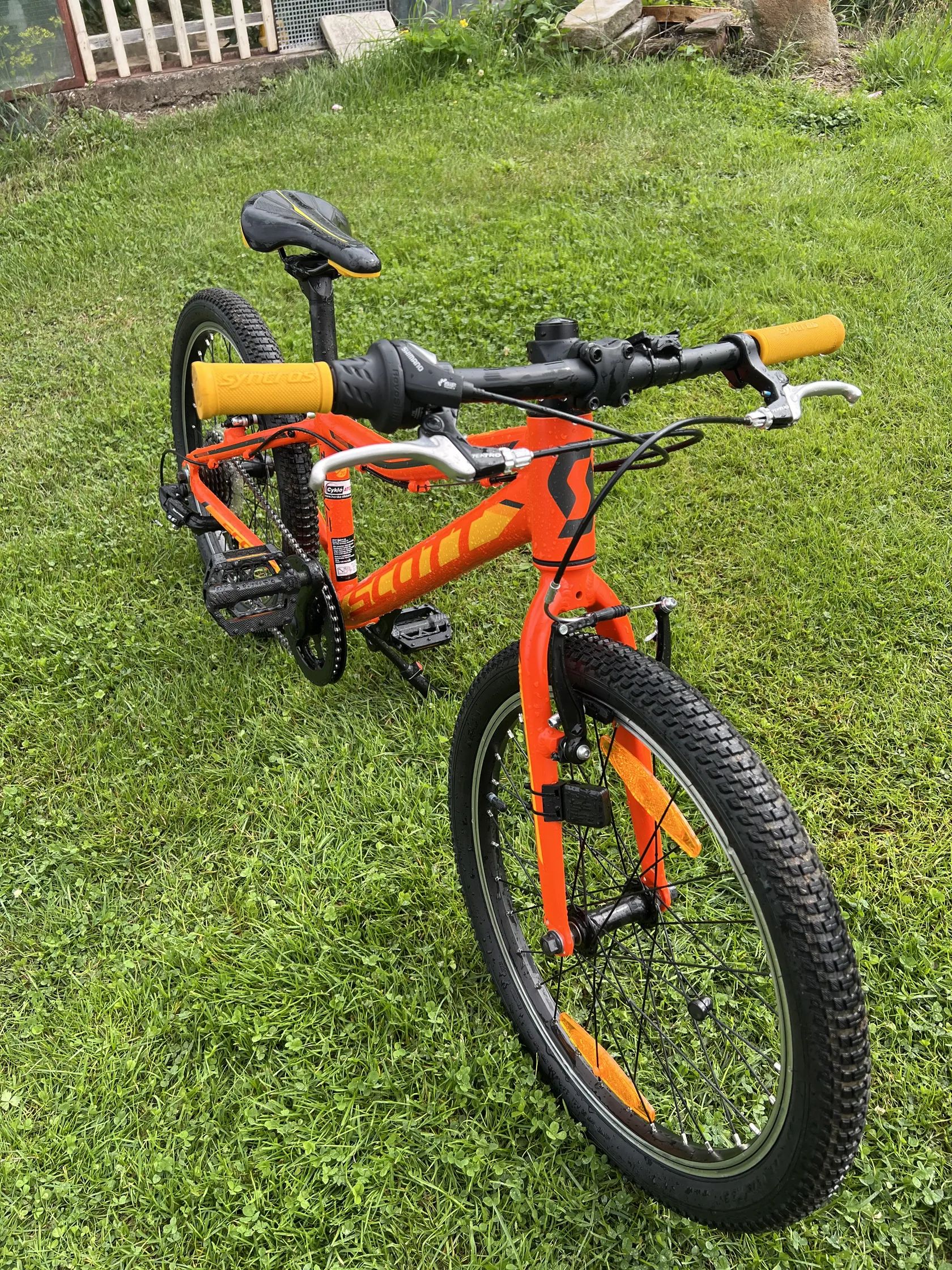 Scott Scale JR 20 Prodám málo jeté dětské kolo v celkově pěkném stavu. 1x7 rychlostí, pevná vidlice, ráfkové brzdy, servisované a připravené na novou sezonu.