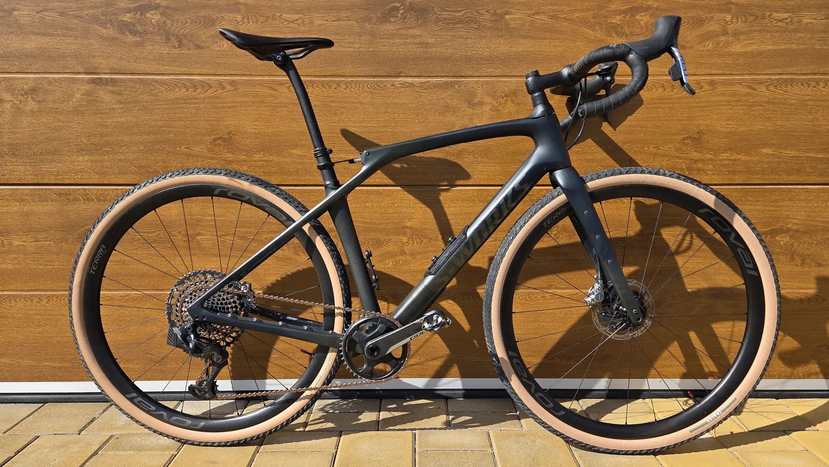 Karbonová kola Roval Terra, karbonová sedlovka i řídítka – důraz na nízkou hmotnost a tuhost.