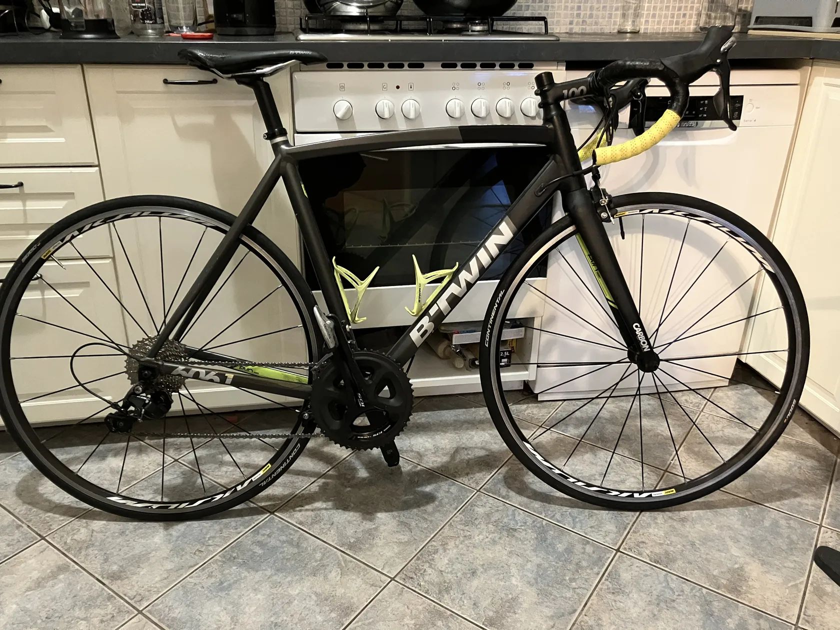 Prodávám B'twin Ultra 900 AF. Sada je Shimano 105 5800. Kola Mavic Aksium, pláště jsou Continental GP5000 25mm. Rám je hliníkový, vidlice karbonová. Rok Výroby bude 2017 nebo 2018. Velikost M. Měřím 174cm a kolo je na mě spíš o chlup větší. Poslední rok a půl bylo používáno jen na trenažeru.