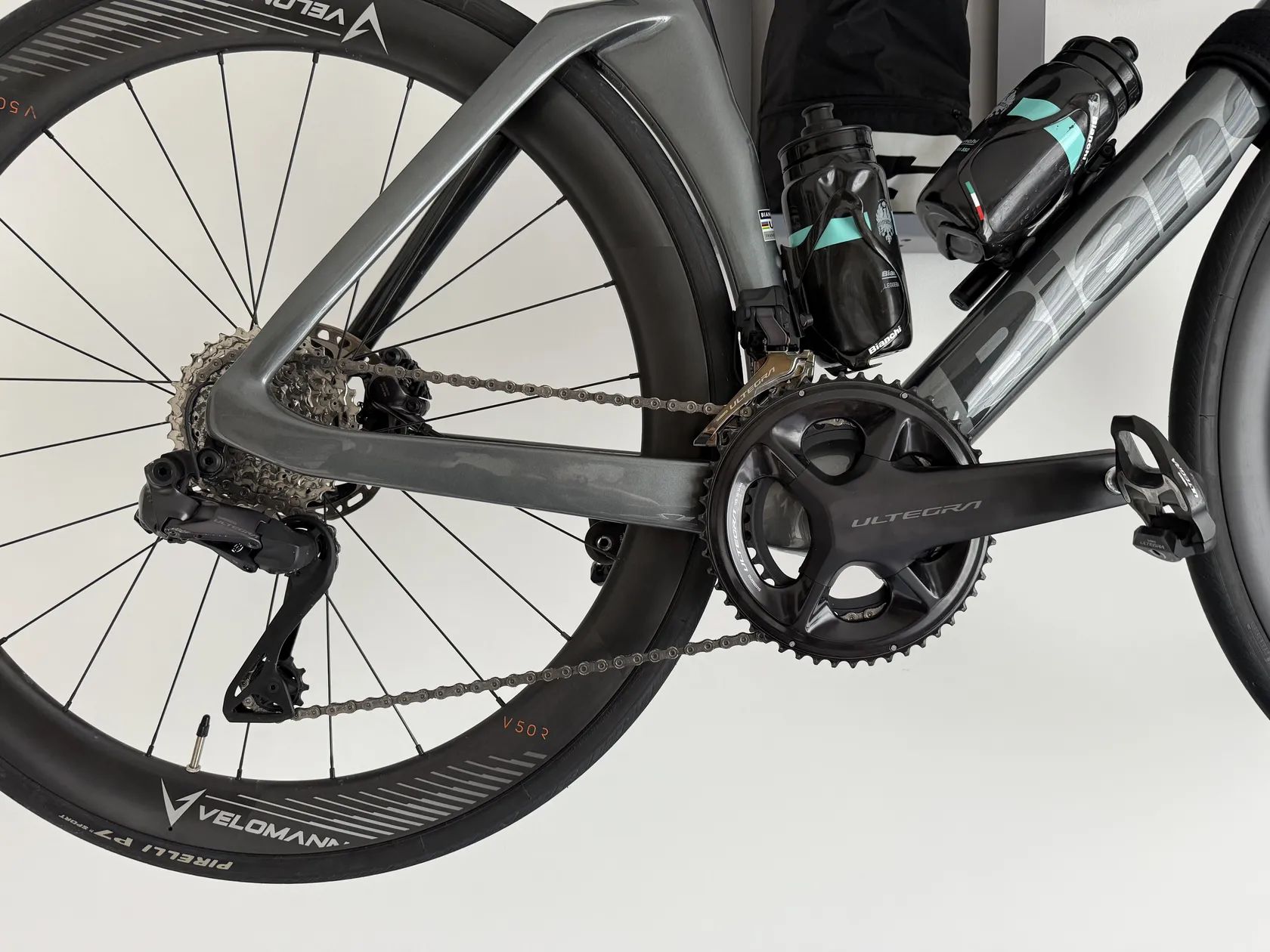 Bianchi Oltre Comp pro rok 2024 s technologiemi a aerodynamickým designem vám umožní dosáhnout další úrovně rychlosti. Lehký karbonový rám s plně integrovanou kabeláží poskytuje čistý vzhled. Kola Velomann Carbon V50R s profilovaným tvarem, tubeless ready a váhou 1.630g zvyšují aerodynamiku.