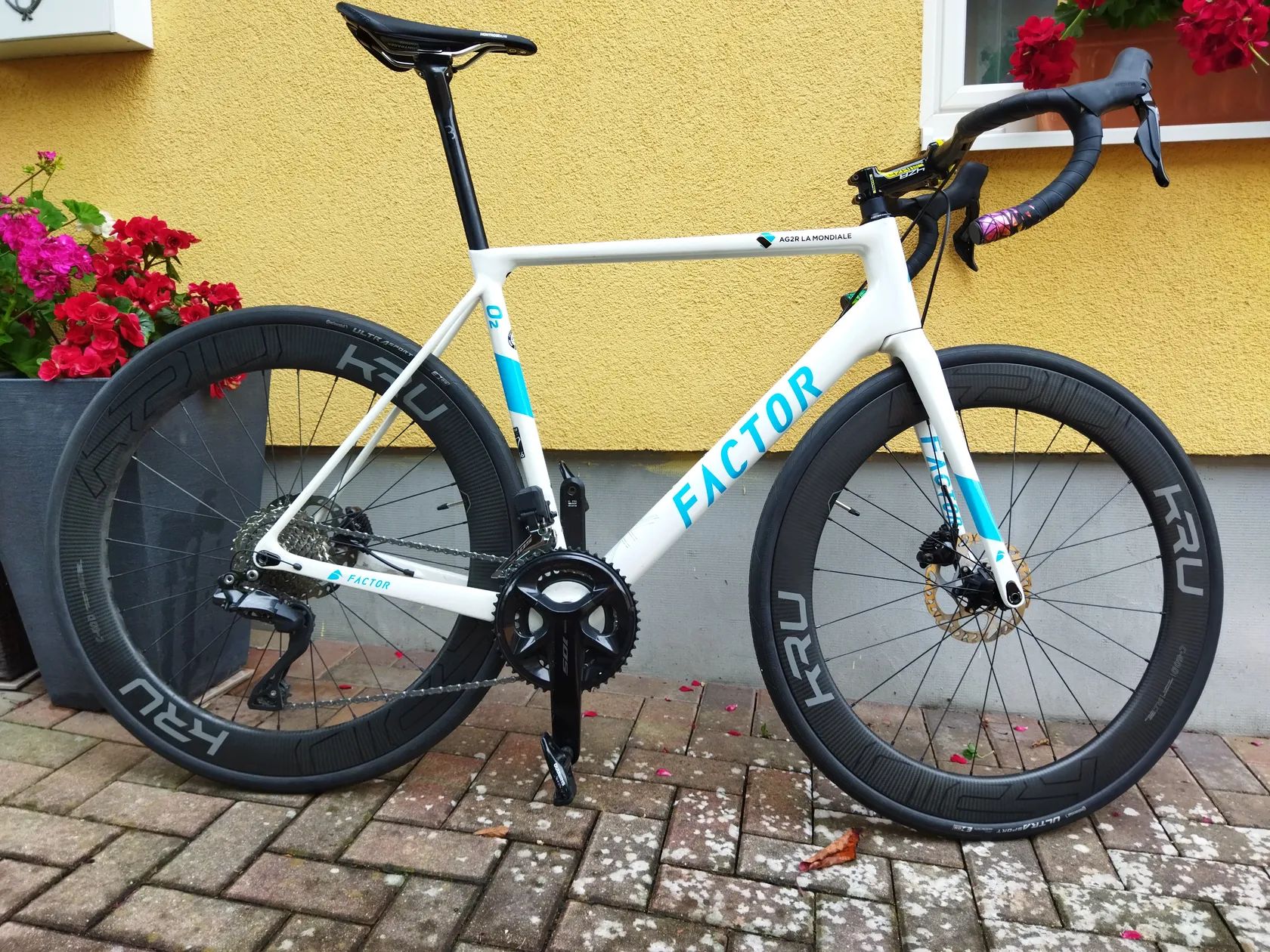 Prodám silniční kolo Factor O2 Romain Bardet edition. Velikost rámu 56 cm Je to Custom stavba, takže žádná seriovka. Je tam sada Shimano 105 Di2 R7170 2x12, převodníky Compact 50/34, kazeta 11/34, na kole je najeto tak 300 km, jen páky jsou lehce odřené, nic co by vadilo použití. Kola karbon KRU 60mm, případně mohu dát jiné, klidně ALU, čímž by se snížila cenovka kola. Sedlovka i řidítka jsou karbon, baterie v sedlovce. Kolo má 7,8 kg. Rám je tuhý, ideální do zavodů, vhodné na postavu od 170-185 cm.