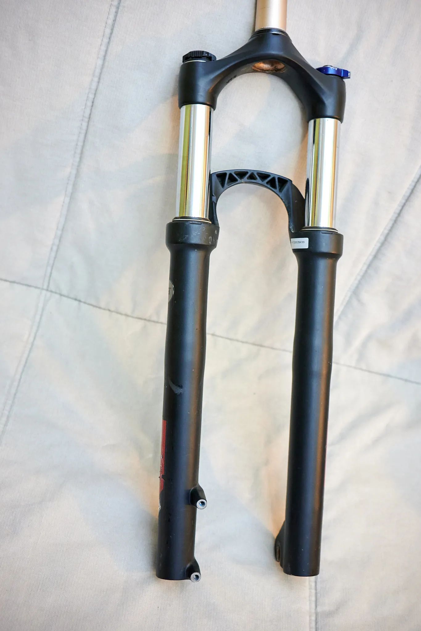 Odpružená vidlice ROCK SHOX XC32 TK SoloAir 100 26 Disc Krk zaříznutý na 163mm, Funkční, stav odpovídá použití, kluzné plochy noh (to stříbrné) zachovalé.