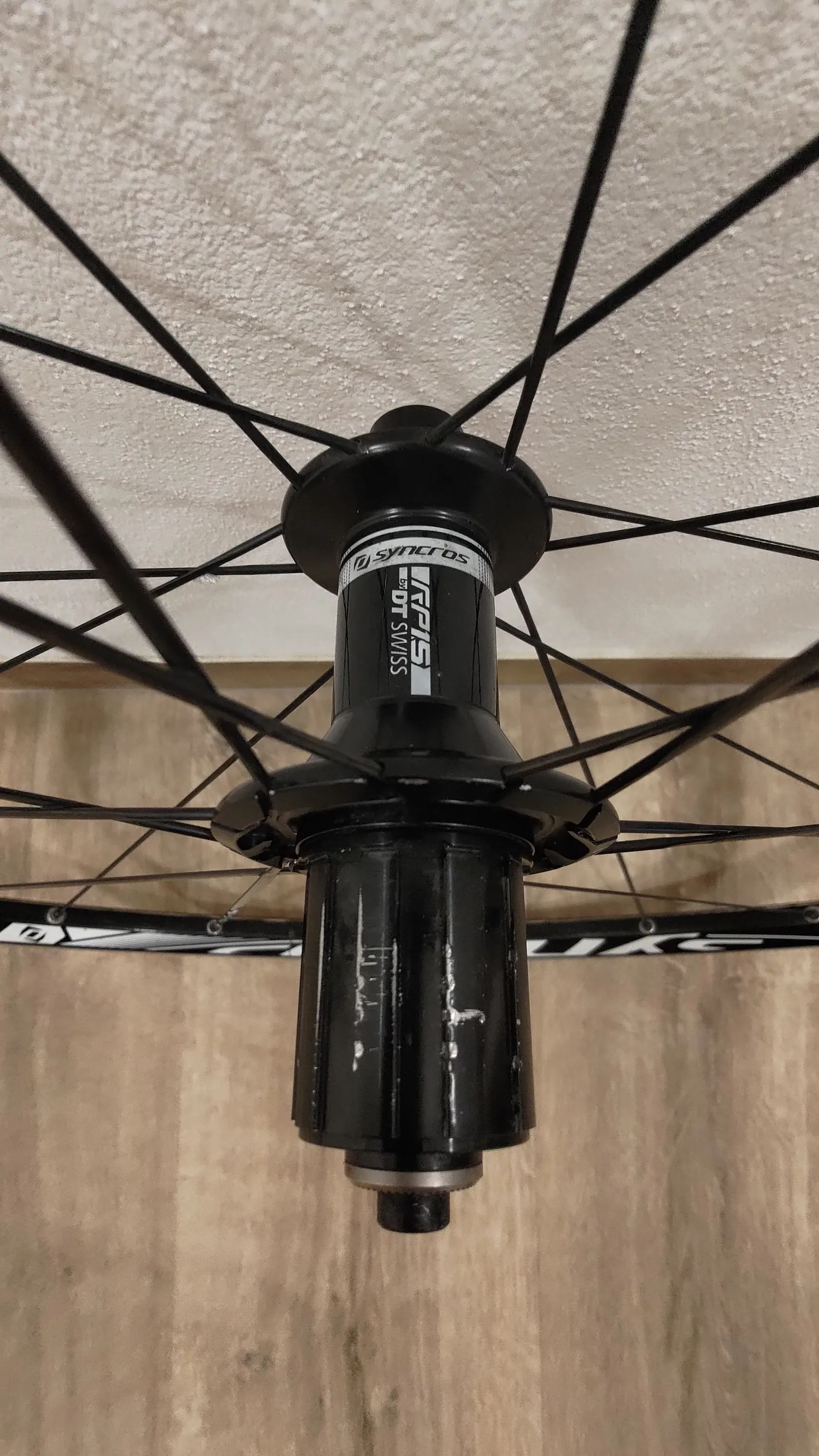 Nabízím kola Syncros RP1.5 vyrobena DT Swiss. Přední kolo je naprosto v pořádku, zadní má na několika místech prasklý ráfek (viz foto). Zadní ráfek je 24 děr (půjde zaměnit pomocí DT swiss RR411, má stejný profil). Náboje jsou identické s DT swiss 240 dicut. Ložiska jsou ok, bez vůle, nedrhnou.