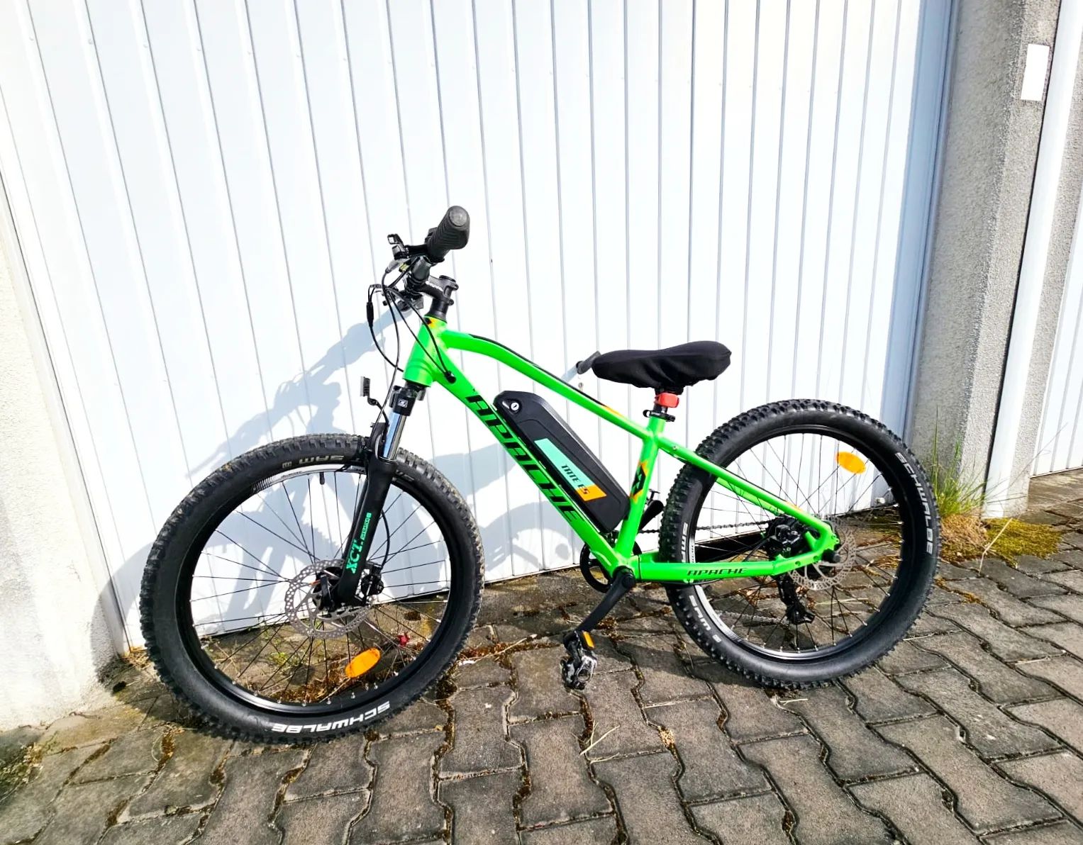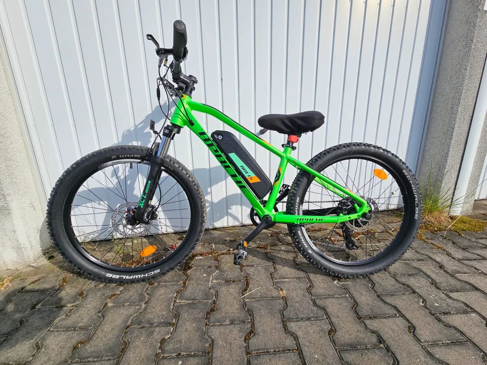 Prodám horské elektrokolo Apache v dobrém a plně funkčním stavu. Kolo je málo jeté (cca 1300 km) a má novou baterii 522 Wh, takže nabízí velmi slušný dojezd. Vhodné na cyklostezky, výlety i lehký terén. Na kole jezdil syn 3 sezóny, jsou na něm vidět známky používání. S jeho váhou byla baterka nevyčerpatelná :-)