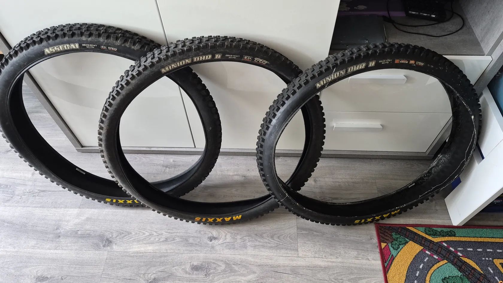 Mám tu na prodej 3 pláště od Maxxisu Assegai 29x2,50 EXO TR Minion DHR ll 29x2,40 EXO TR Minion DHR ll 29x2,40 3C MAXX TERRA EXO+ TR Kevlarová patka Pláště jsou jeté ale vzorek furt dost dobrý 500kč za kus Prodej možný i samostatně Osobní předání nebo zaslání zásilkovnou