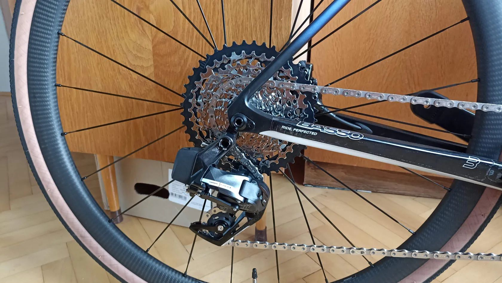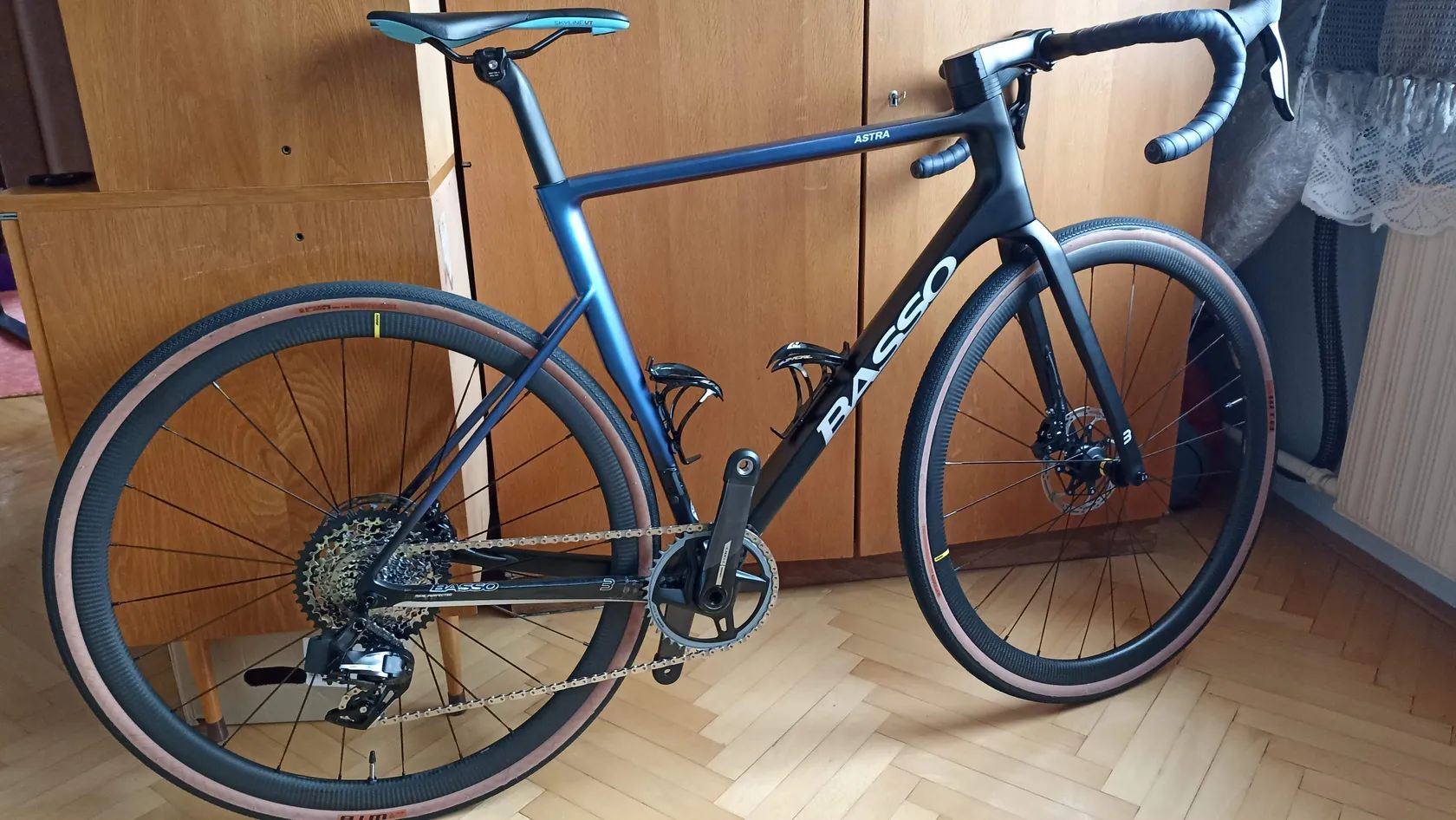 Pohodlná endurance silnička na rámu vyrobeném a lakovaném v Itálii. Velikost na postavu 173 až 183 cm, představec basso 100 mm (navíc 110 mm), karbonová řídítka Syncros creston 1.0 š. 42 cm, karbonová sedlovka Basso, komplet el. sada Sram force xplr 1x12 s převodníkem 42 zubů . Karbonová kola Mavic cosmic sl 32 s doživotní zárukou, bezdušové pláště WTB š. 32 mm, střed s keramickými ložisky Blackbearing. Kolo je zánovní bez vady, jeto loni cca 500 km. Váha kola bez pedálů a košíků je 7,9 kg.