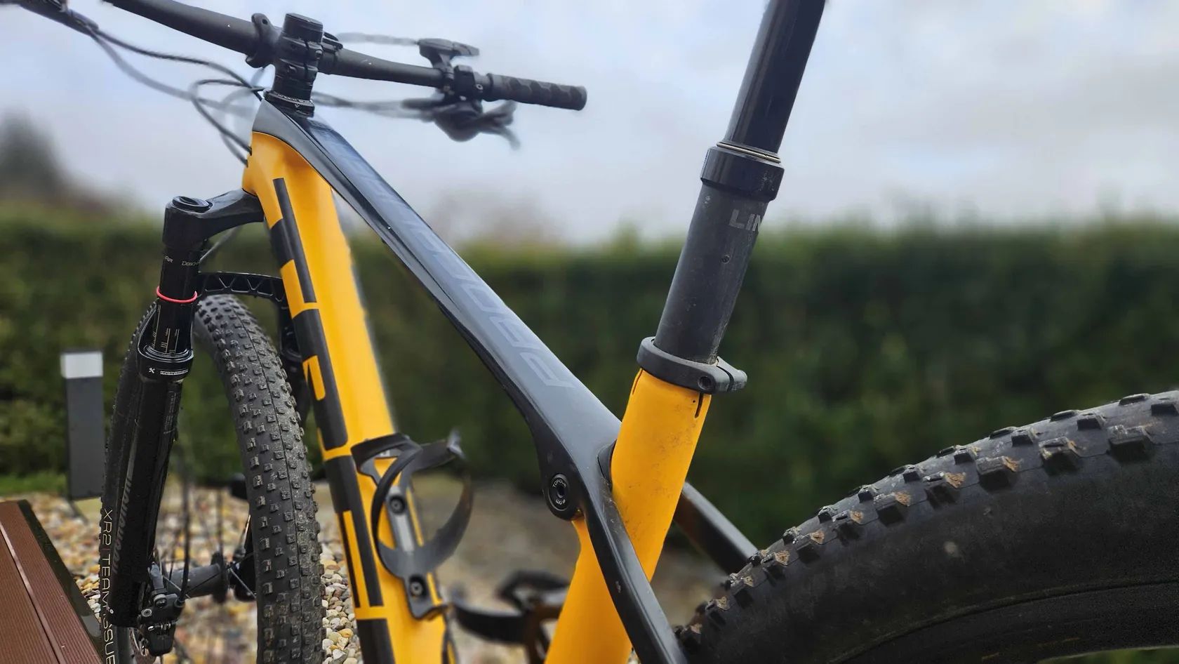 Prodej kola TREK Procaliber 9.6 velikosti M, karbonový rám, barva / Satin Marigold/Deep Smoke (rok 2023). Vidlice RockShox Recon Gold RL100 mm. Lehké kolo s vybavením XT/SLX (1x12). Vypínání přední vidlice z řídítek. Vnitřní vedení lanek.