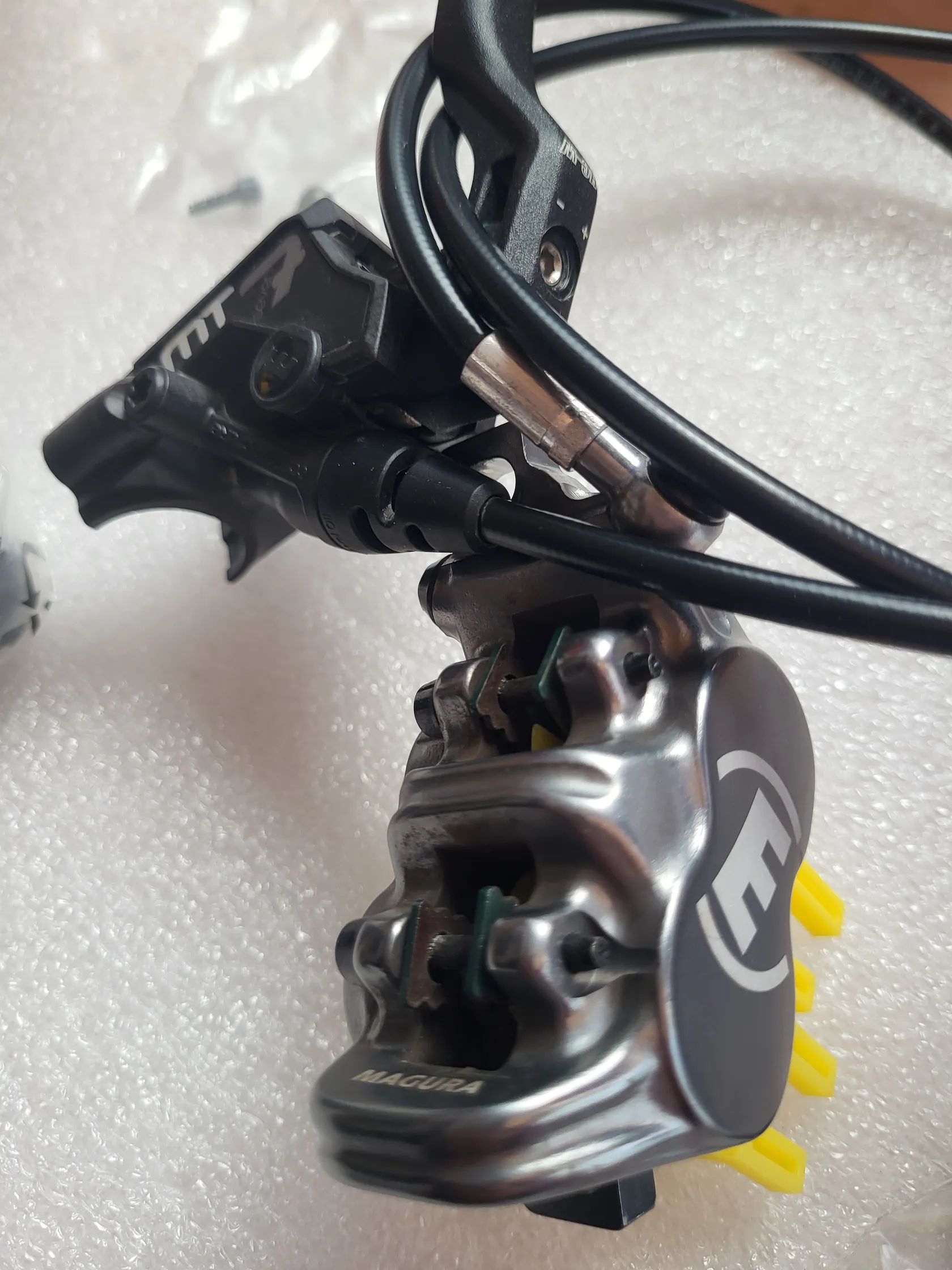 Prodám komplet brzdy Magura MT7 včetně 2 kusů kotoučů 203 mm. Zadní brzda rozpojena z důvodu demontáže. Pro opětovnou montáž přidám novou olivu, trn + další drobné díly. Brzdy sundány z Turbo Levo S - Works po 1250 km. Jsou v naprosto bezvadném stavu.