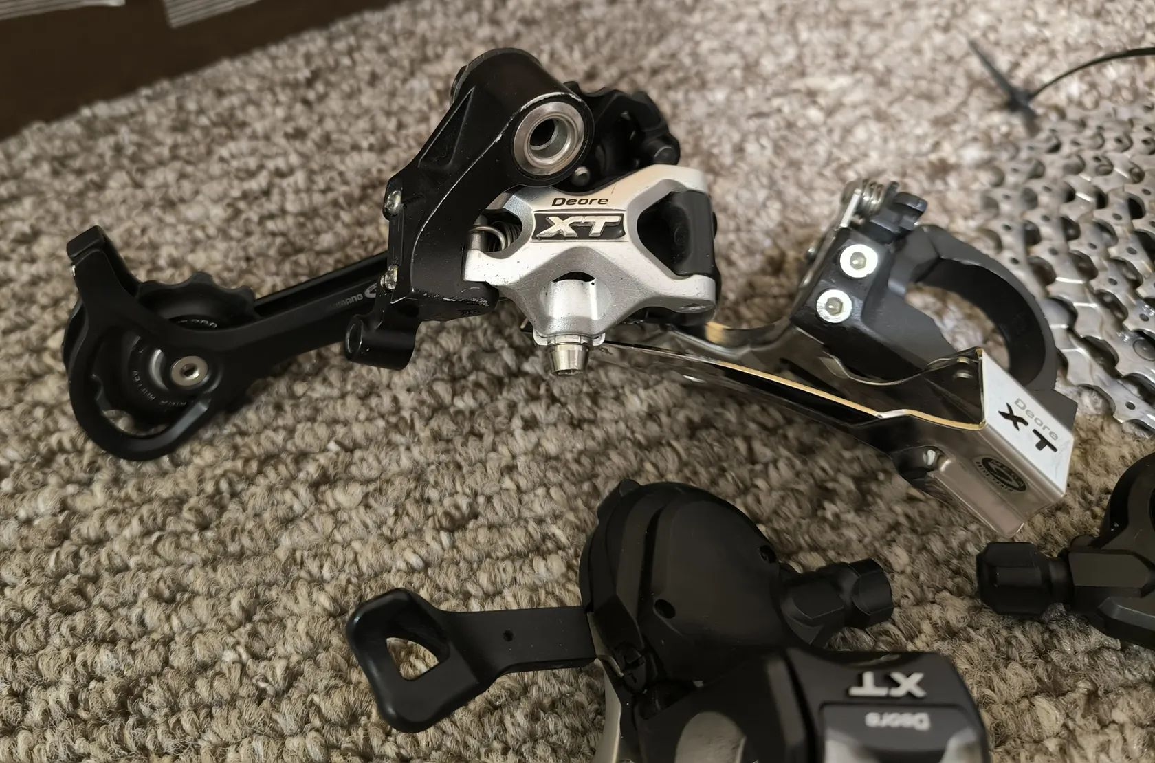 Sada Shimano Deore XT 770 Řazení 3x9 dual release Přesmyk , přehazovačka a kazeta 11-34. Velmi pěkný stav , bez vůlí. Prodej komplet, zásilkovna s platbou předem možná.