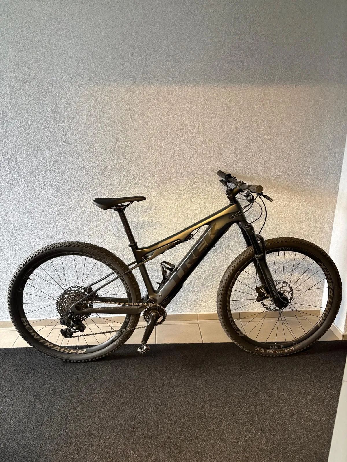 Rám: Karbon OCLV pro horská kola, IsoStrut, Knock Block, zdvih 60 mm Vidlice: vzduchová ROCKSHOX 15x110 mm Tlumič: vzduchový tlumič Fox Performance, Trek IsoStrut Systém pohonu: Fazua Ride Trail 50Nm motor, Baterie 250 Wh Řazení: elektronický bezdrátový SRAM GX AXS 1x12 Karbonová kola: Bontrager KOVEE Elite 23, pláště ještě originál Bontrager Brzdy: hydraulické SHIMANO Karbonový kokpit (řídítka+představec) Bontrager KOVEE PRO