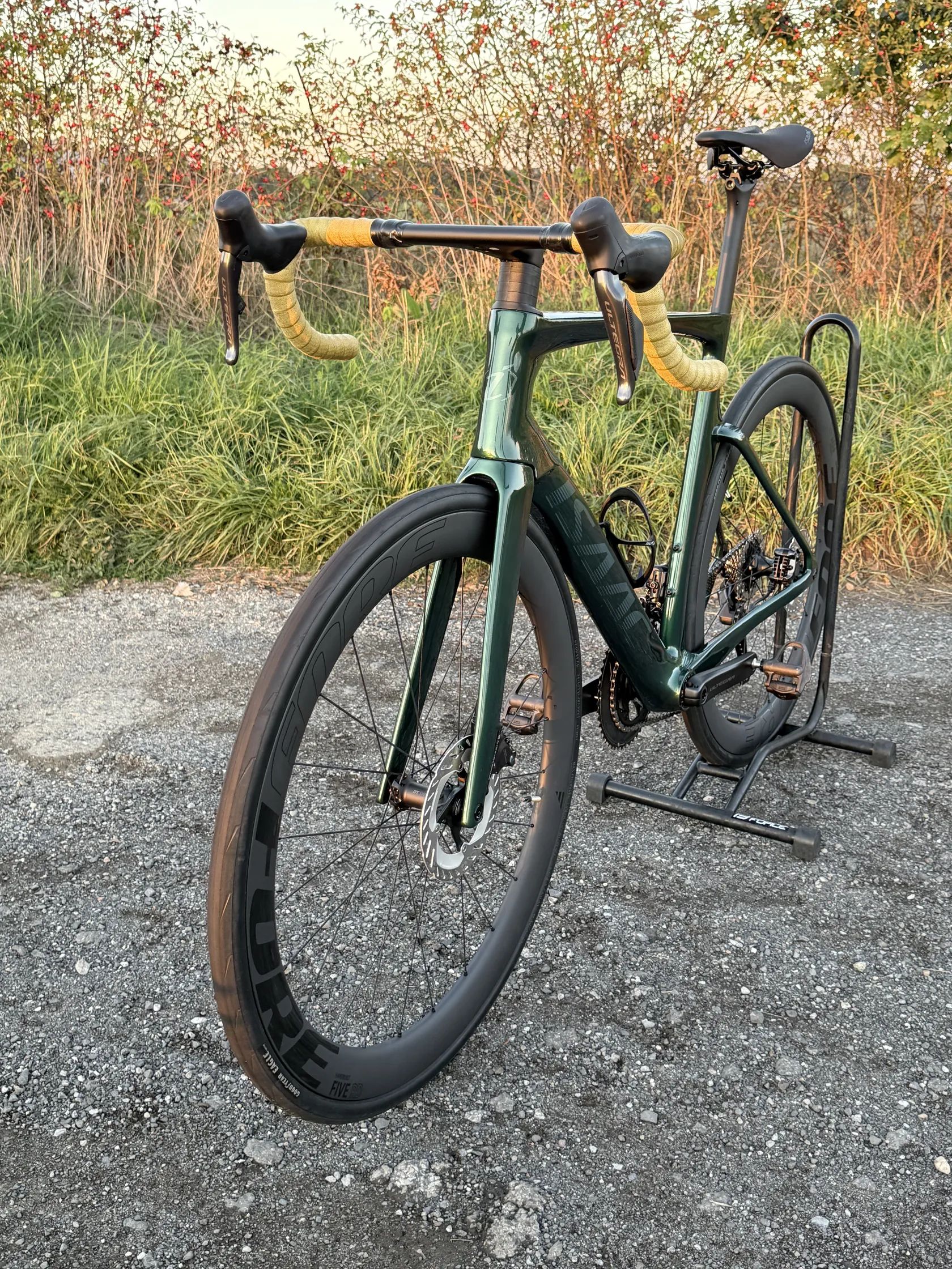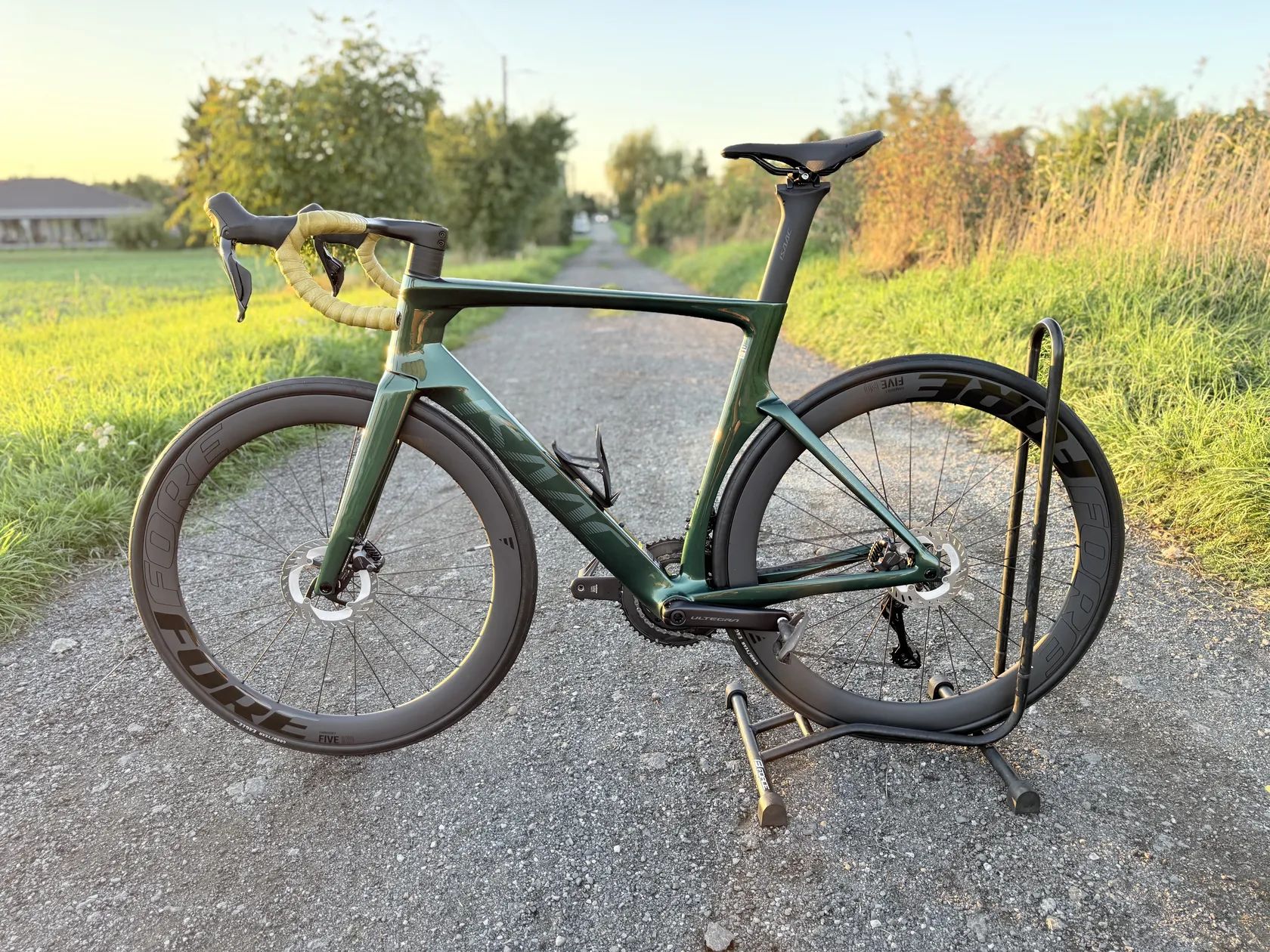 > UCI Certifikace pro závodní použití > Technologie a materiál Isaac Carbon Tech Quad40 > Hmotnost rámu včetně vidlice ve velikosti L je pouhých 1557 gramů > Hlavové složení Isaac Full Integrated 1,5 palce > Pevné osy Thru axle 12 mm zapuštěné se závitem 1,5 > Střed T47 závitový externí > Plně integrovaná kabeláž > Full Carbon kokpit Airflow 2 > Průchodnost rámu 34C > Řídítka ISAAC Airflow Carbon šířka 42 mm a délka 100 mm > Kompletní sada Shimano Ultegra Di2 > Náboje DT Swiss 350 > Karbonová kola FORE FIVE 50 mm Carbon