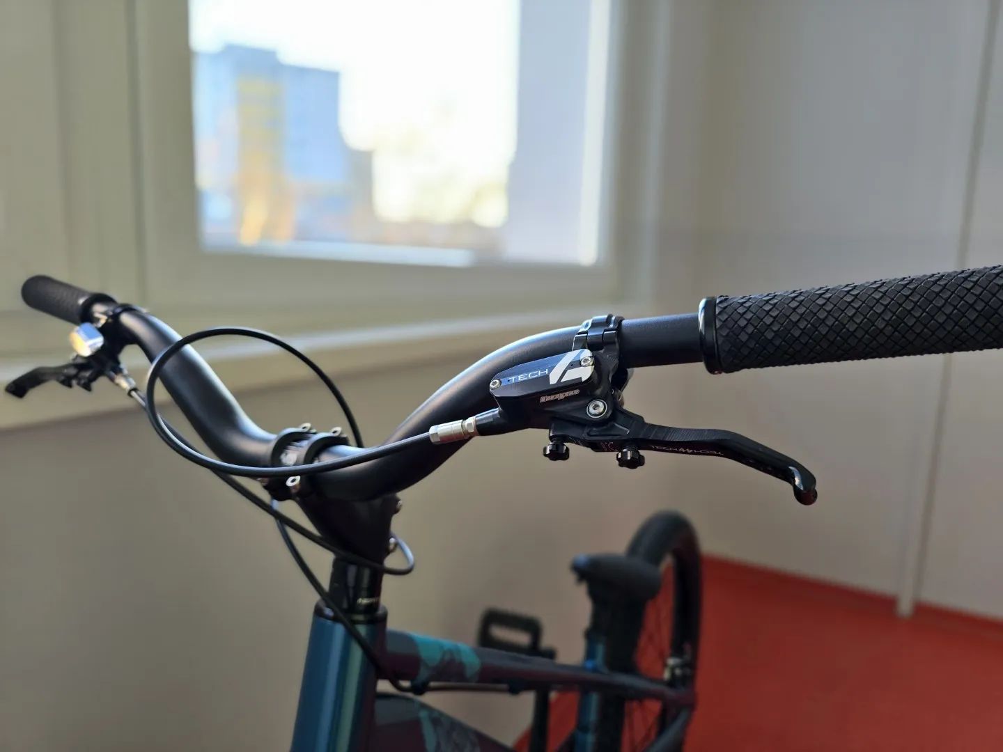 Kolo je osazené Hope Tech 4 EVO Trial Zone brzdama, Lizard Skins Charger Evo gripy a polepené Effetto Mariposa off road fólií (spodní rámová trubka a zadní stavba).