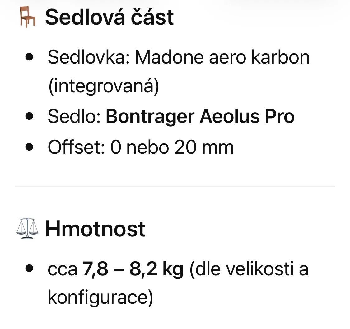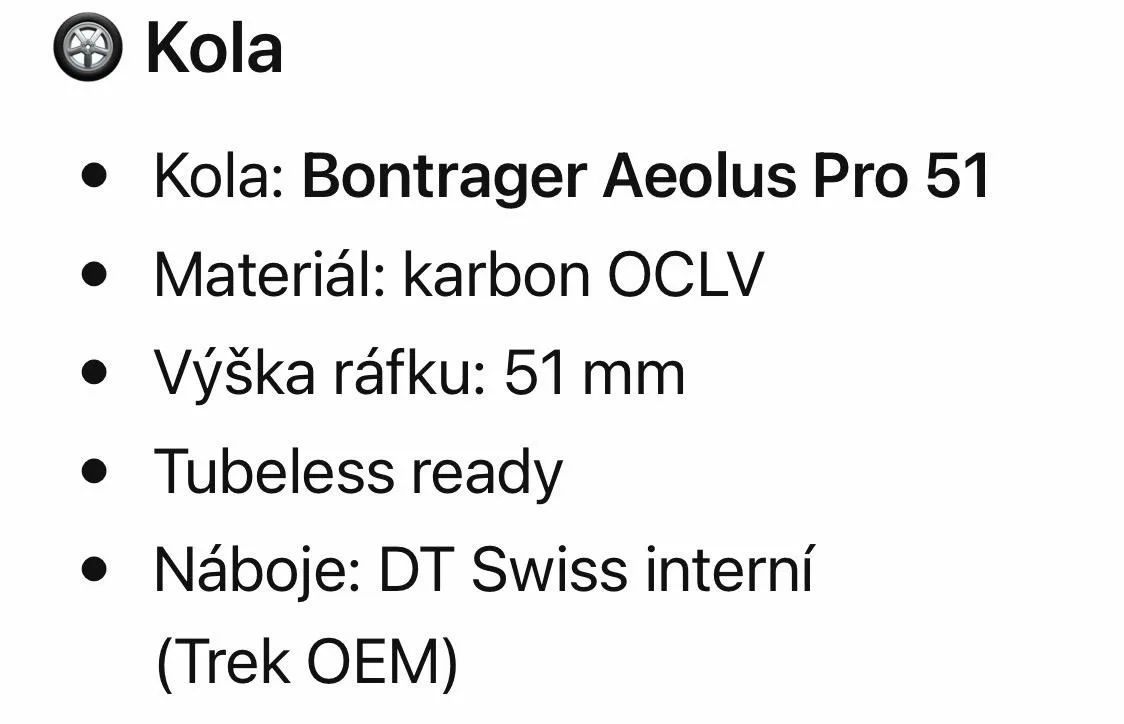 Prodám Madone SRL 8 gen 7 Project one osazeno Sram Force AXS, powermeter, klatka CeramicSpeed, držák Garmin 3D Kováč, přední orig. Trek. V březnu první výměna komponentu, převodníky, kazeta, řetěz, destičky, vyměněny všechny baterky v pakach. Osazený nově plaste Continental 5000 Tour de France 4800kc s light dušemi RevoLoop v hodnotě 1800kc. . Ceníková cena 290tis.Kc, byla mi poskytnuta sleva na 220tis.Kc. Možno odečíst DPH. Ťukáme na spodní části rámové trubky, a nepatrné odrena přehazovačka. Kolo nepotřebuje žádné investice. Počet km nevim, mam kol několik myslim tak do 10tis.km.