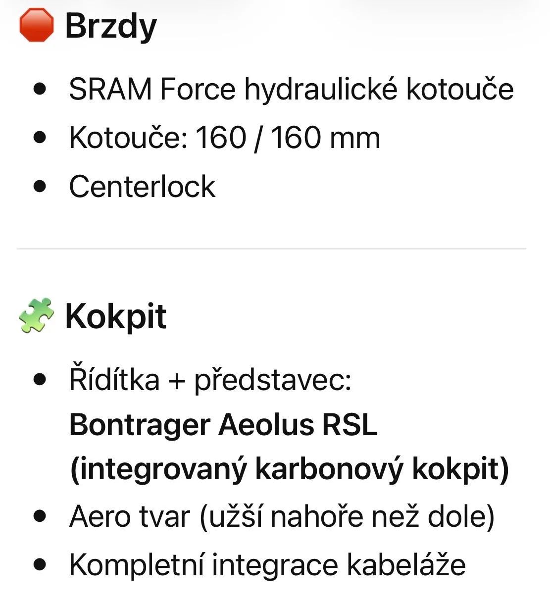Celkově závodní osazení odpovídající vysoce výkonnému silničnímu kolu
