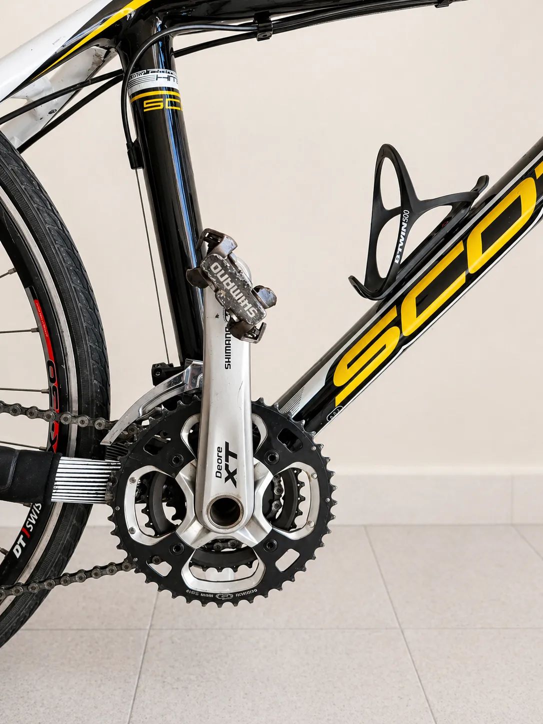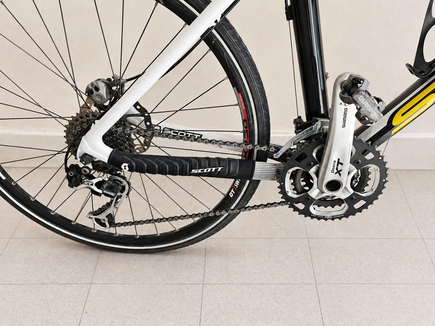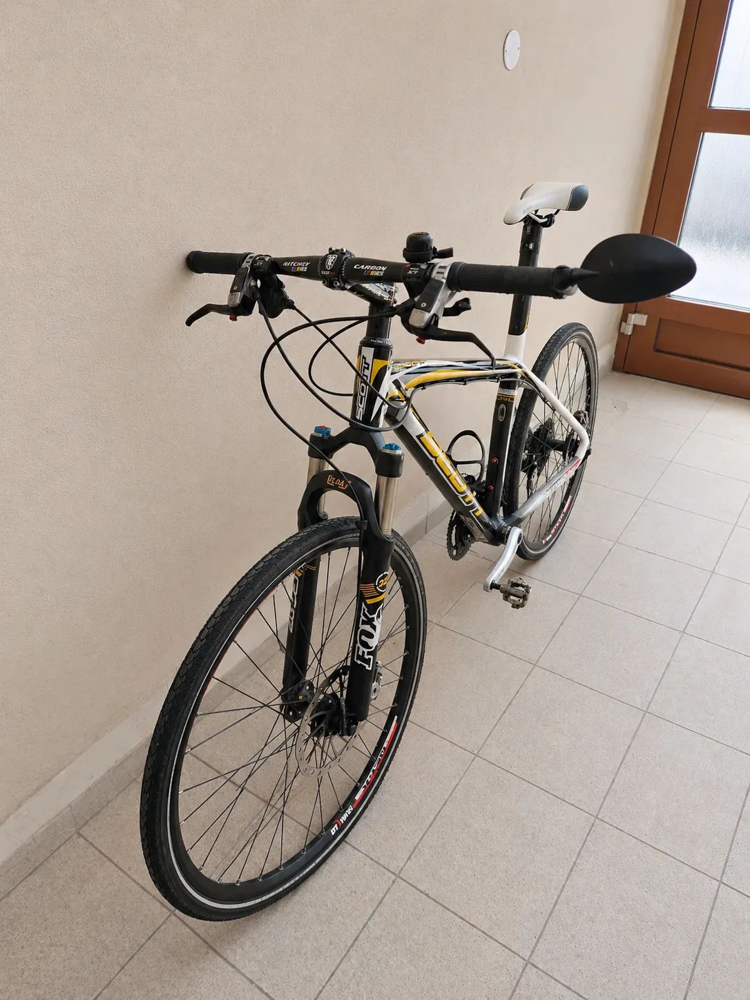 Výbava - Rám: Scott Scale Carbon (HMX Net, integrovaná sedlovka) - Řazení + pohon: kompletní Shimano Deore XT (včetně SPD pedálů) - Vidlice: Fox (vzduchová, nastavitelná) - Brzdy: Magura hydraulické kotoučové - Kola: DT Swiss X430 - Pláště: Schwalbe Marathon Plus 26x1.35 (odolné proti defektu, ideální na silnici) - Kokpit: Ritchey WCS Carbon - Sedlo: Ghost