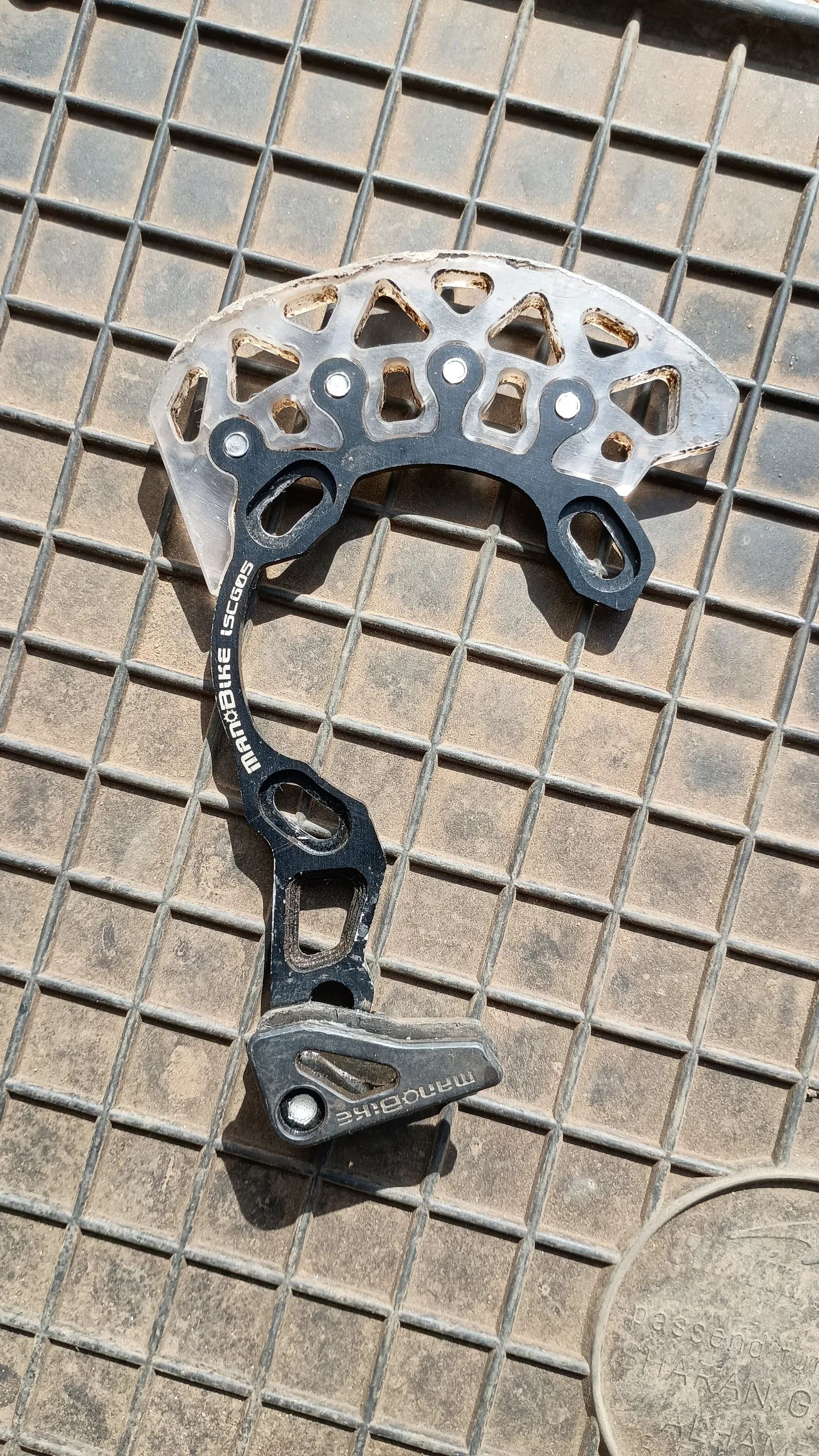 vodítko řetězu MANOBIKE EN Top s bashguardem ISCG05 černé, použité ale plně funkční. Je pouze odřené, žádné praskliny. Pro 30-32z převodníky