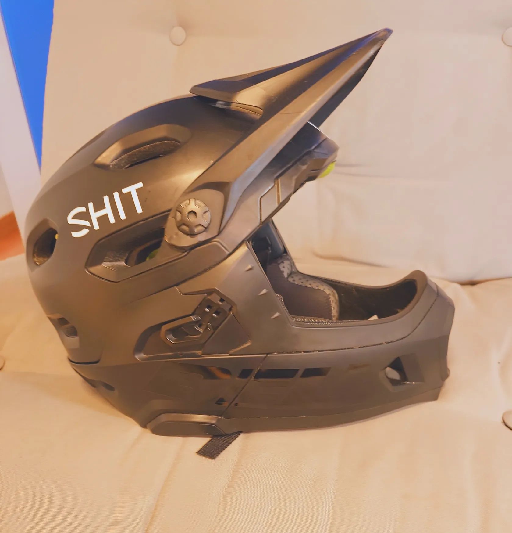 Prodám použitou helmu Bell Super DH S odnímatelným chráničem brady. Velikost M (55-59 cm) Fidlock přezka 25 ventilačních otvorů DH certifikace Nalomený a od(p)orně, trvanlivě a bezpečně opravený šťitek na pravé straně u šroubku. Výzdoba se dá beze stop odstranit.